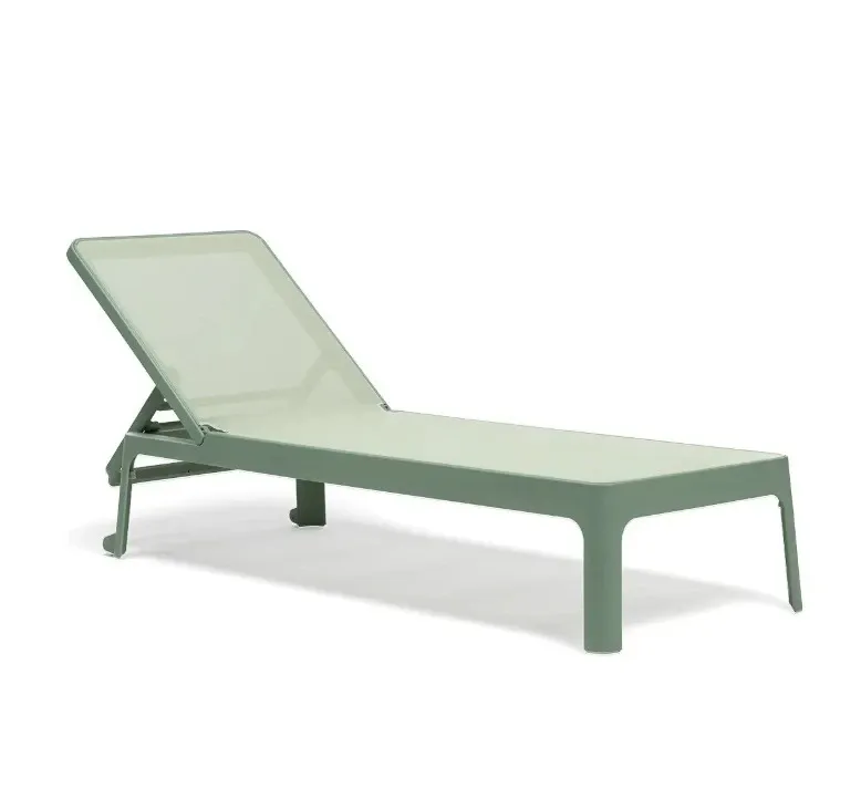 Lettino prendisole senza braccioli impilabile.