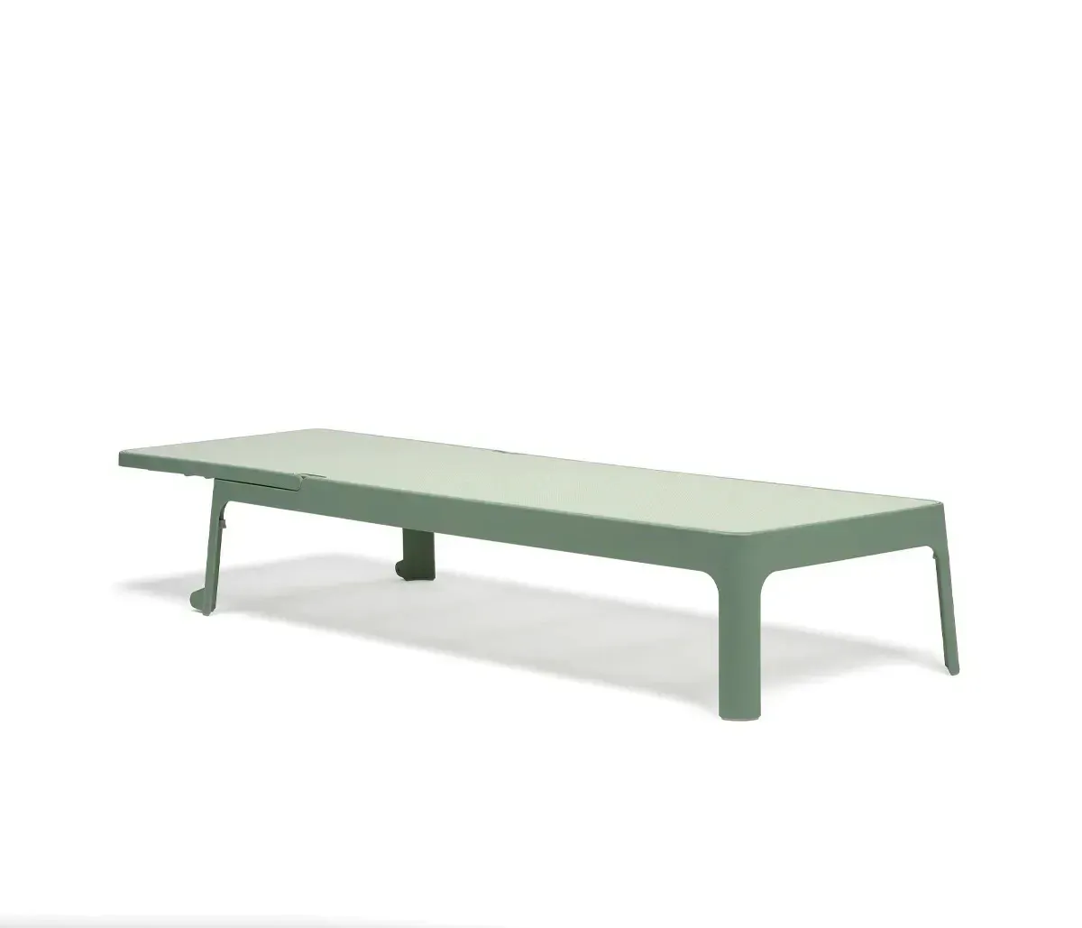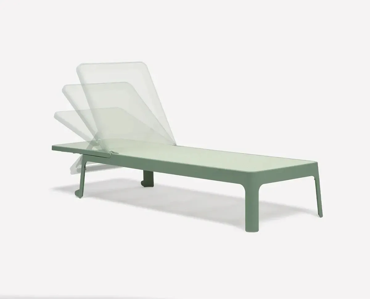 Lettino prendisole dalle linee pulite e armoniose unite a una superficie d appoggio ampia e accogliente. Schienale regolabile in quattro posizioni fino alla completa planarità.