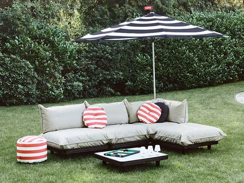 Paletti è un divano lounge modulare. Questo ti permette di creare il tuo set lounge su misura. Un divano ad angolo, un divano a U, una chaise longue oppure due panche affiancate. Puoi realizzare tutto con pochi clic. Siediti e lasciati avvolgere dai cuscini più generosi che tu abbia mai provato. E non preoccuparti se qualcosa si rovescia. Paletti resiste a tutto. Puliscilo con un panno umido, sciacqualo rapidamente con un getto d acqua ad alta pressione oppure lava le fodere dei cuscini in lavatrice. Il tuo Paletti tornerà come nuovo. Paletti può resistere a un acquazzone estivo, ma in caso di pioggia persistente consigliamo di utilizzare la Paletti Cover.
