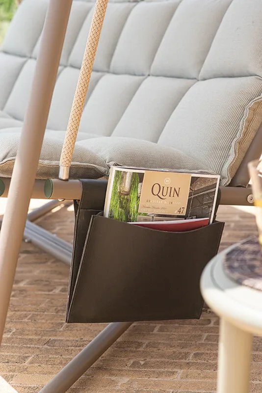 Possibilità di aggiungere come accessorio borsa porta oggetti in eco cuoio e piano in teak - richiedi preventivo