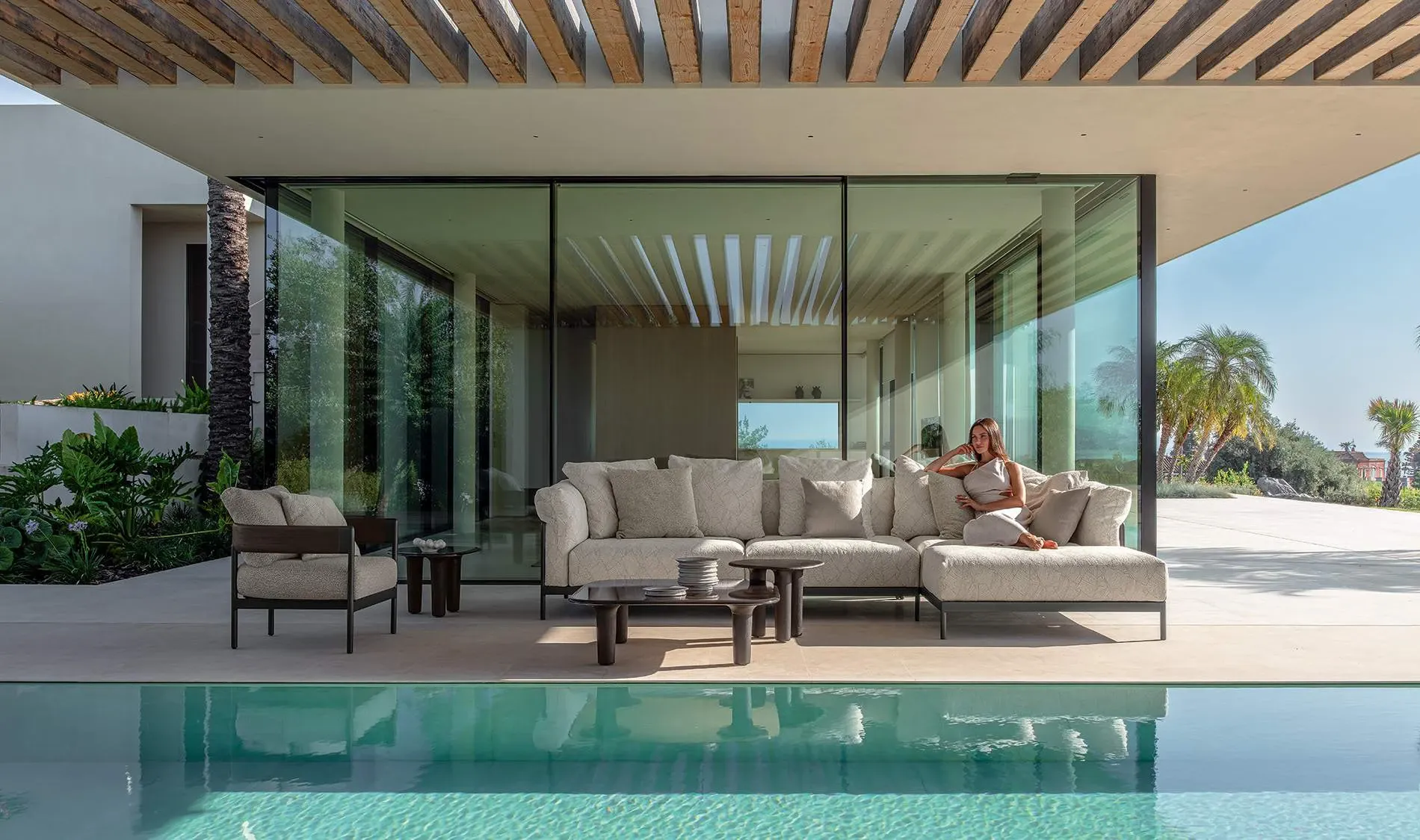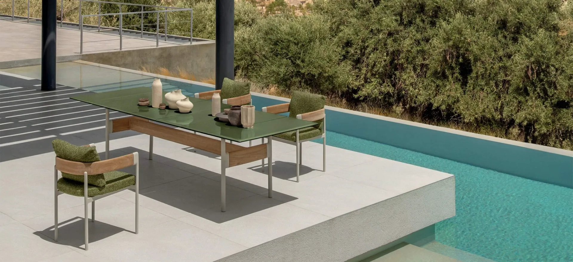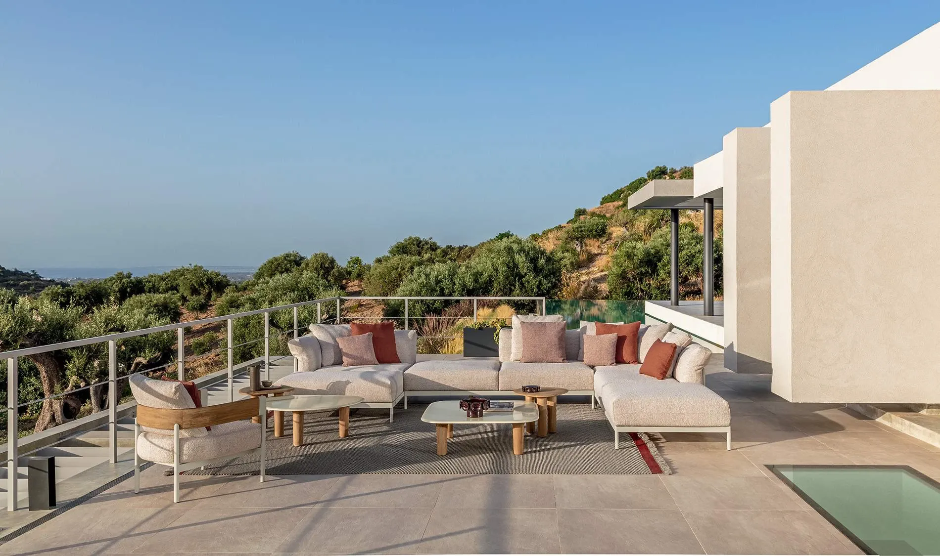 Comfort e multi-materialità sono gli elementi chiave di questa collezione che, come rievoca il nome, vuole trasmettere una sensazione di fluidità, di benessere vissuto lasciando che il tempo per il relax scorra liberamente. Una raccolta di elementi dove i cuscini avvolgenti, abbinati a materiali ricercati e a tessuti a righe dal forte valore decorativo, contribuiscono a portare l atmosfera dell indoor negli spazi esterni. La struttura in alluminio, in elegante bianco caldo o il più deciso mokka, si integrano armoniosamente con le sinuose lavorazioni di legno, esaltando il know di Talenti nella realizzazione di arredi che fondono materiali apparentemente lontani. Il risultato è un mix raffinato e naturale tra il calore tradizionale del teak e la forza estetica degli elementi laccati, in grado di formare una famiglia di prodotti completa e versatile che include divani componibili, poltrone lounge, tavoli e sedute dining e soluzioni relax.