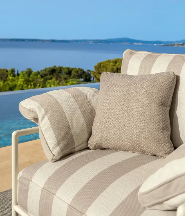 Il divano due posti unisce eleganza e comfort in un design contemporaneo. La struttura in metallo dona un aspetto sofisticato e moderno, assicurando stabilità e durata. Il rivestimento del divano è in tessuto neutro, con una texture morbida e accogliente che si adatta a qualsiasi stile di arredamento. I cuscini sono disposti strategicamente per offrire un sostegno ottimale. Questo divano è perfetto per spazi living moderni o per aggiungere un tocco di stile a una terrazza coperta, offrendo un luogo accogliente per rilassarsi.