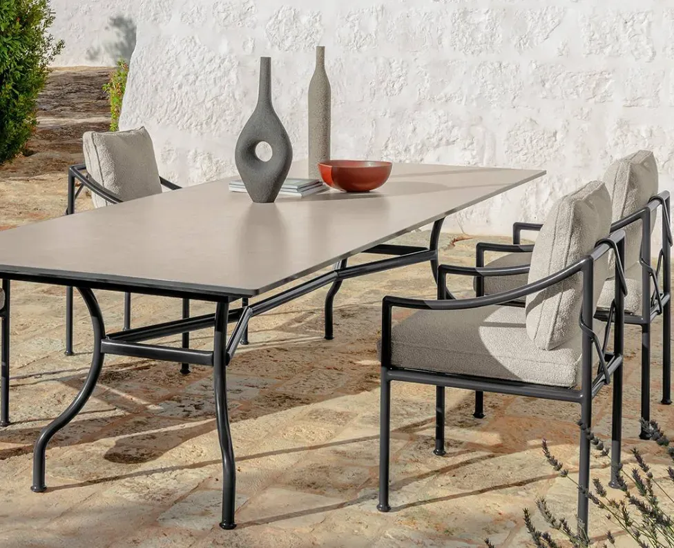 Il tavolo pranzo rettangolare 280×110 è un pezzo imponente e raffinato, ideale per ambienti spaziosi e conviviali. La struttura in metallo conferisce stabilità e un tocco moderno, mentre il piano chiaro in gres aggiunge eleganza. La generosa superficie permette di accogliere comodamente numerosi ospiti, rendendolo perfetto per cene in famiglia o con amici. Le gambe dal design leggermente curvo e armonioso completano l aspetto distintivo del tavolo. Questo tavolo non è solo un pratico punto d incontro, ma anche un elemento decorativo che valorizza l ambiente in cui è inserito.