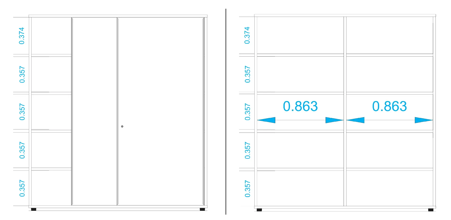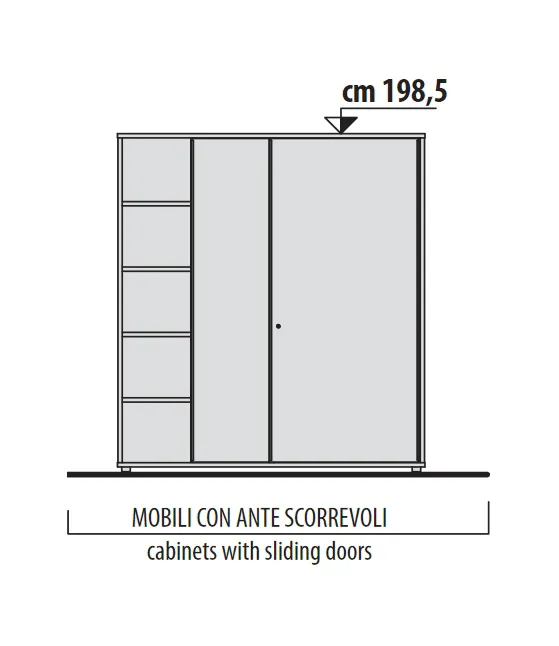 Ante dotate di serratura. L'anta anteriore è provvista di due profili "maniglia" di colore ARGENTO.
