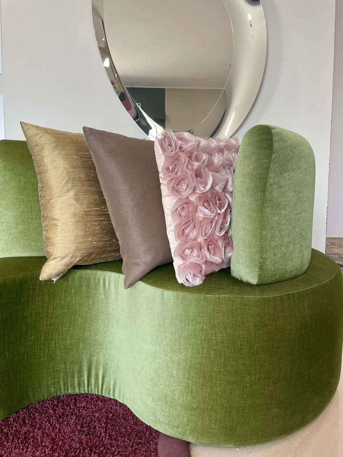 Set di tre cuscini di brand diversi, in texture e materiali vari, perfetti per dare una nuova personalità al living. Contattaci per info su misure e altre curiosità.