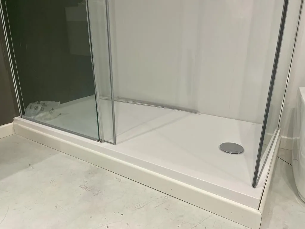 Box doccia a base rettangolare con struttura in acciaio cromato lucido e chiusura in vetro trasparente, apertura con anta scorrevole. Piatto doccia dim 160x70cm, comprensivo di colonna rubinetteria della Gessi.