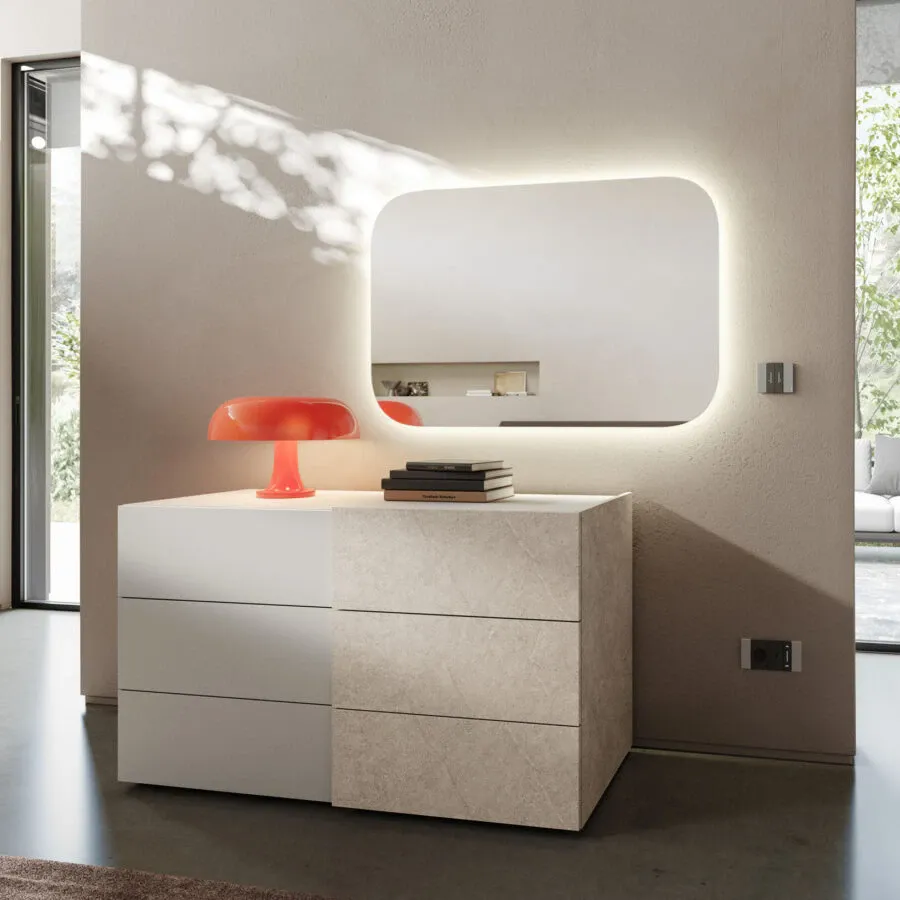 Per il modello Camera night 21, il marchio ha scelto un materiale di qualità elevata: il modello qui presente è realizzato in laminato, perfetto per completare esteticamente una camera da letto di qualsiasi stile assicurandoti, contemporaneamente, di avere più di un piano d'appoggio multifunzionale e sempre a disposizione; questo materiale dall'estetica raffinata sarà in grado di arricchire la tua zona del riposo seguendo il tuo gusto personale e preservando negli anni le doti pratiche ed estetiche distintive.