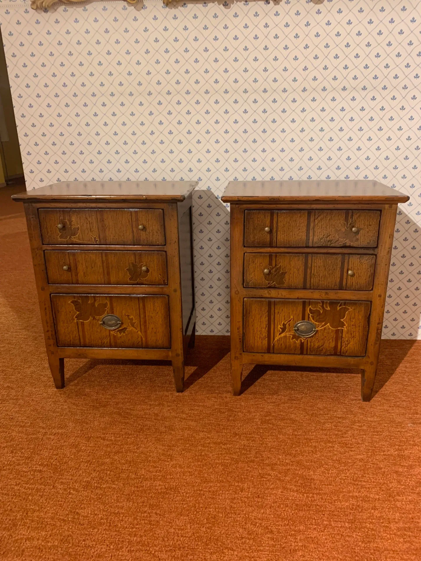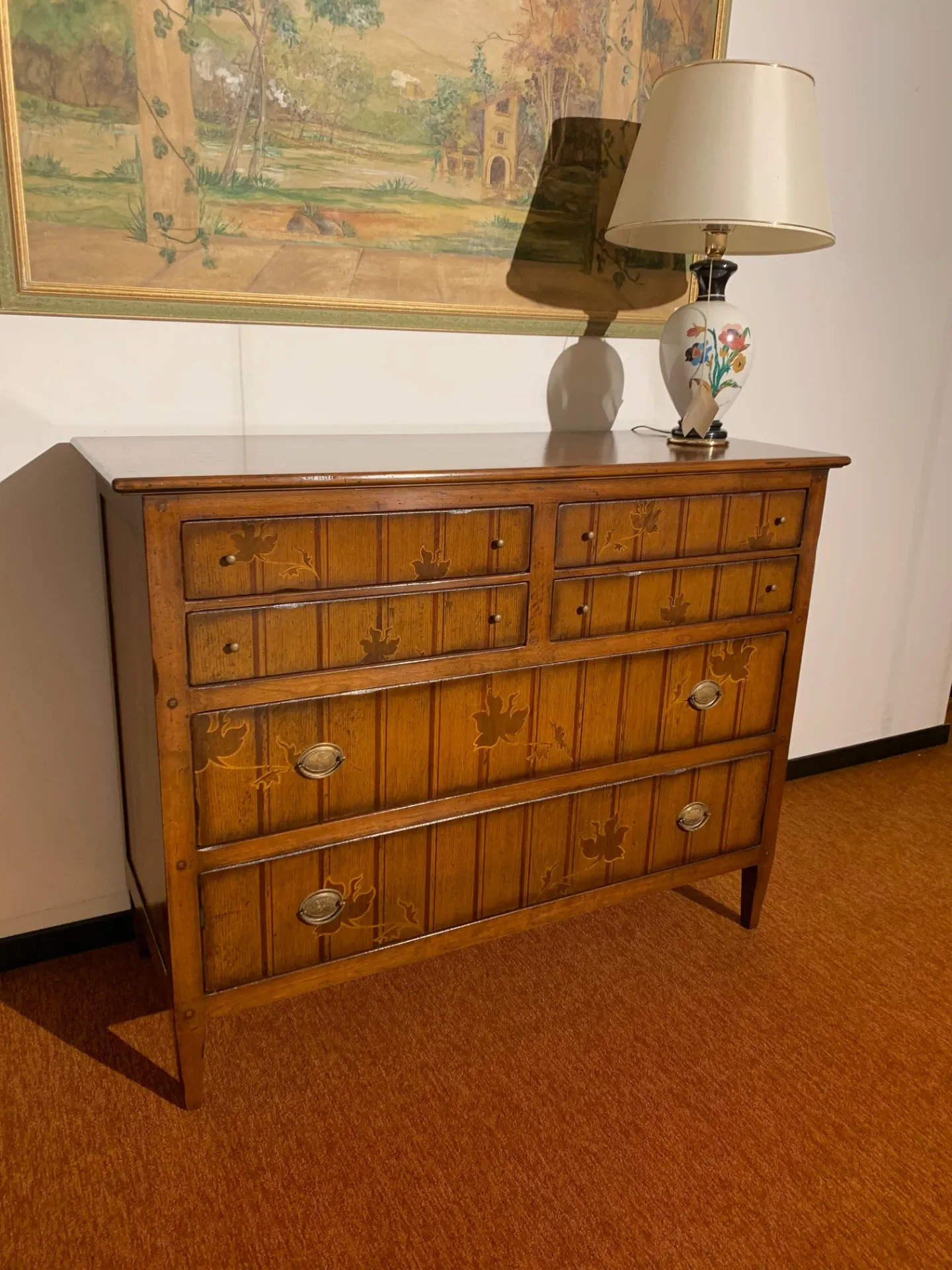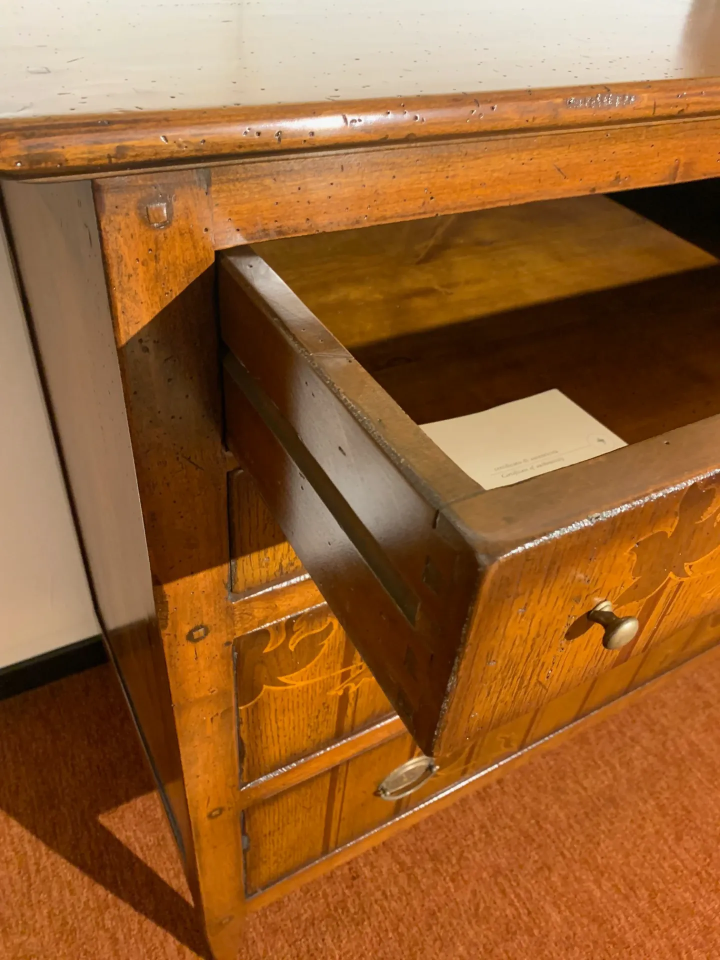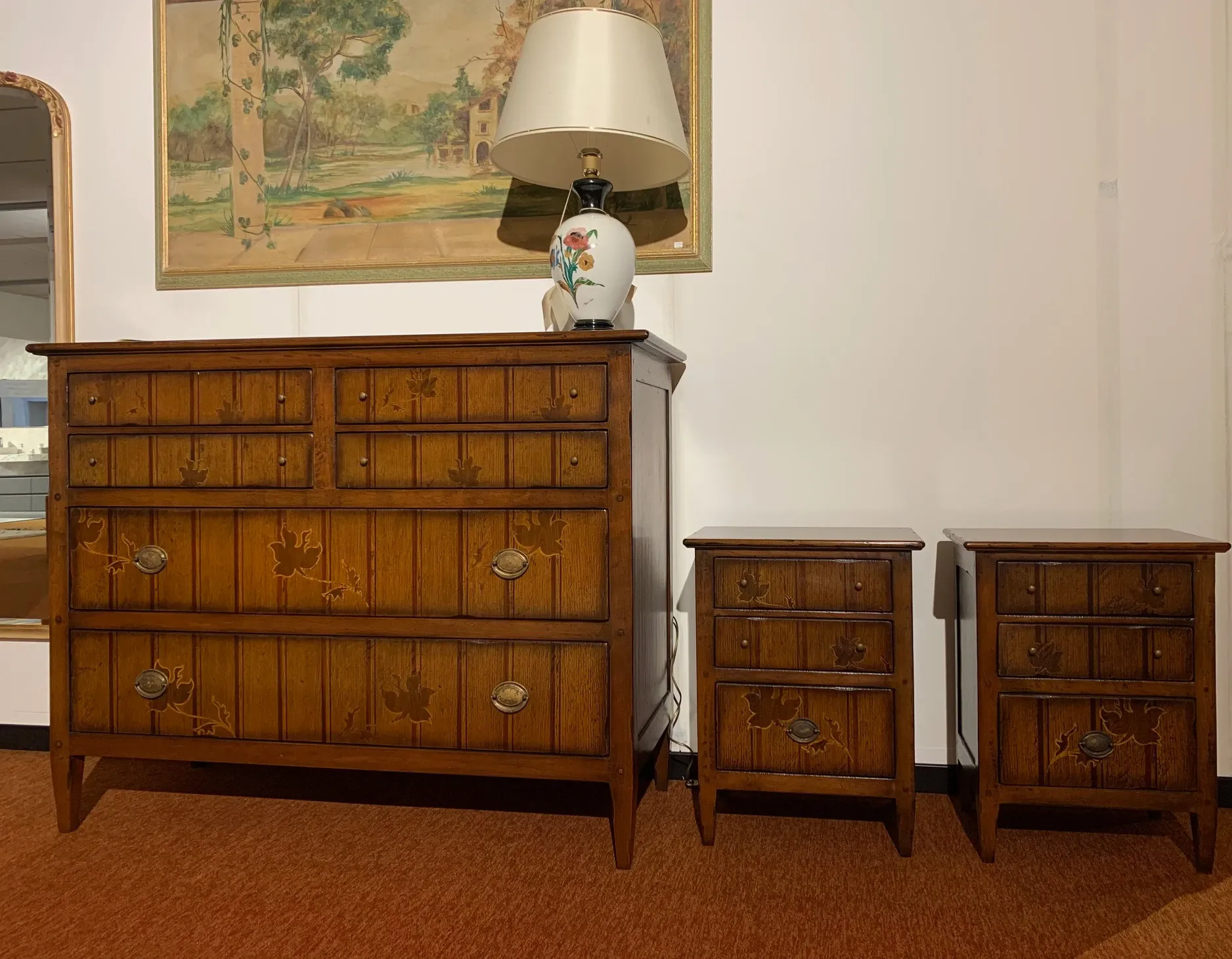 Como' cm. L. 140 P. 54 H. 109 comodini cm. L. 50 P. 36 h. 66 Ditta MARCHETTI legno massello con intarsi .