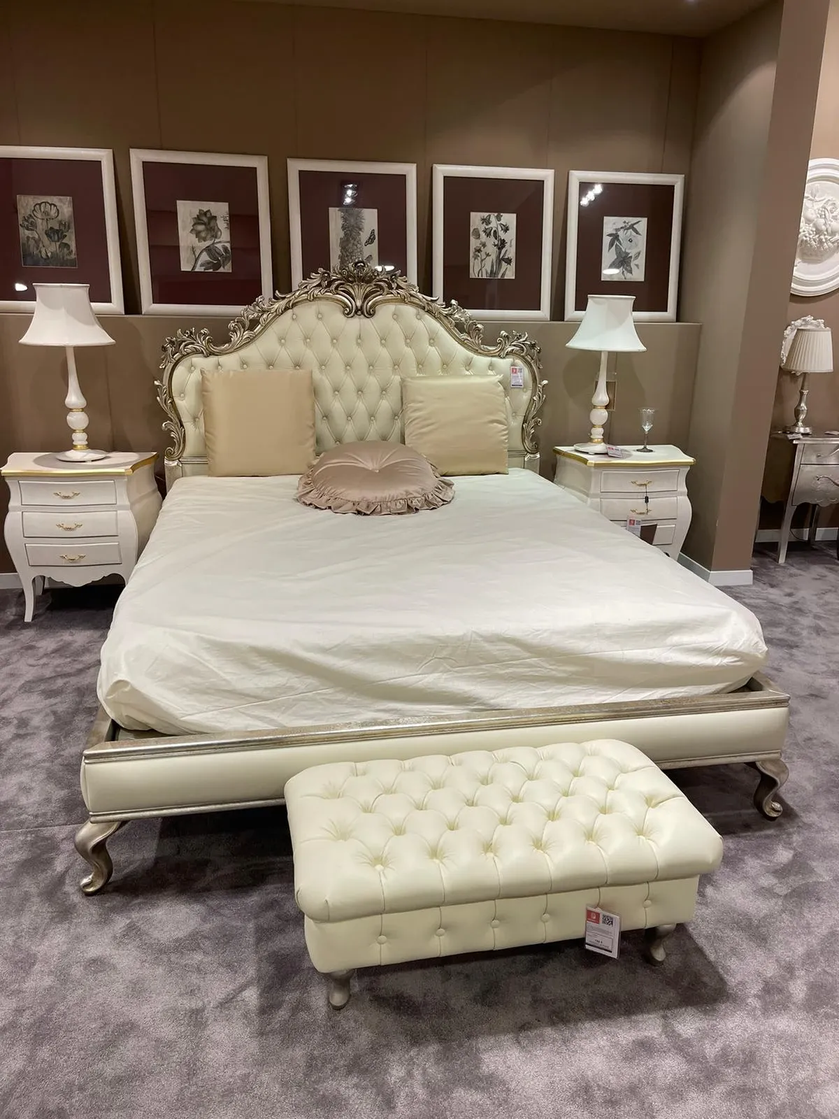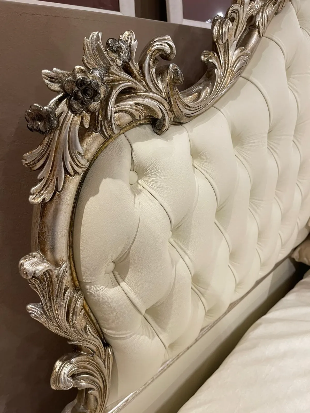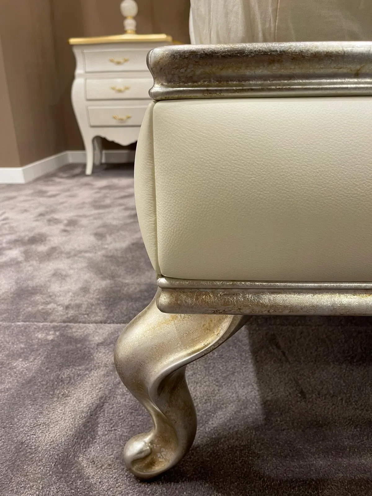 MOZ-M-CY_LETTO MOZART L. 160 P/D. 200 H.152 CON TESTATA E GIROLETTO IMBITTITI FIN. C63 FOGLIA ARGENTO OSSIDO RIV. PELLE RANCHO LATTE (RETE E MATERASSO ESCLUSI 160X200)