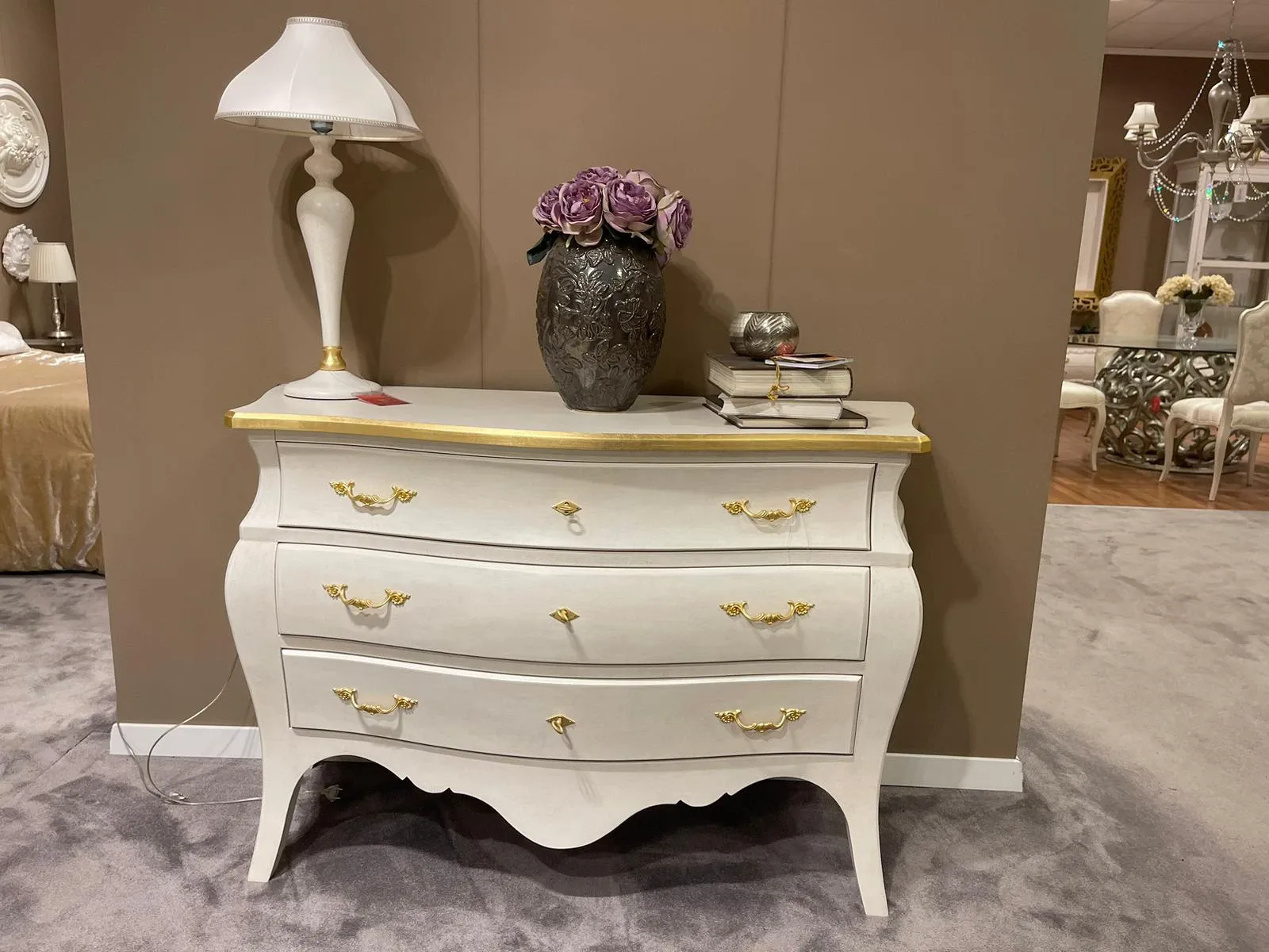278-C-B_COMÒ PERSEO L. CM 131 P./D. CM 50 H. CM 86 IN LEGNO MANIGLIA CLASSIC, FIN. AVORIO LUIS CON PARTICOLARI ORO MANIGLIA ORO GUIDE METALLICHE AMMORTIZZATE.