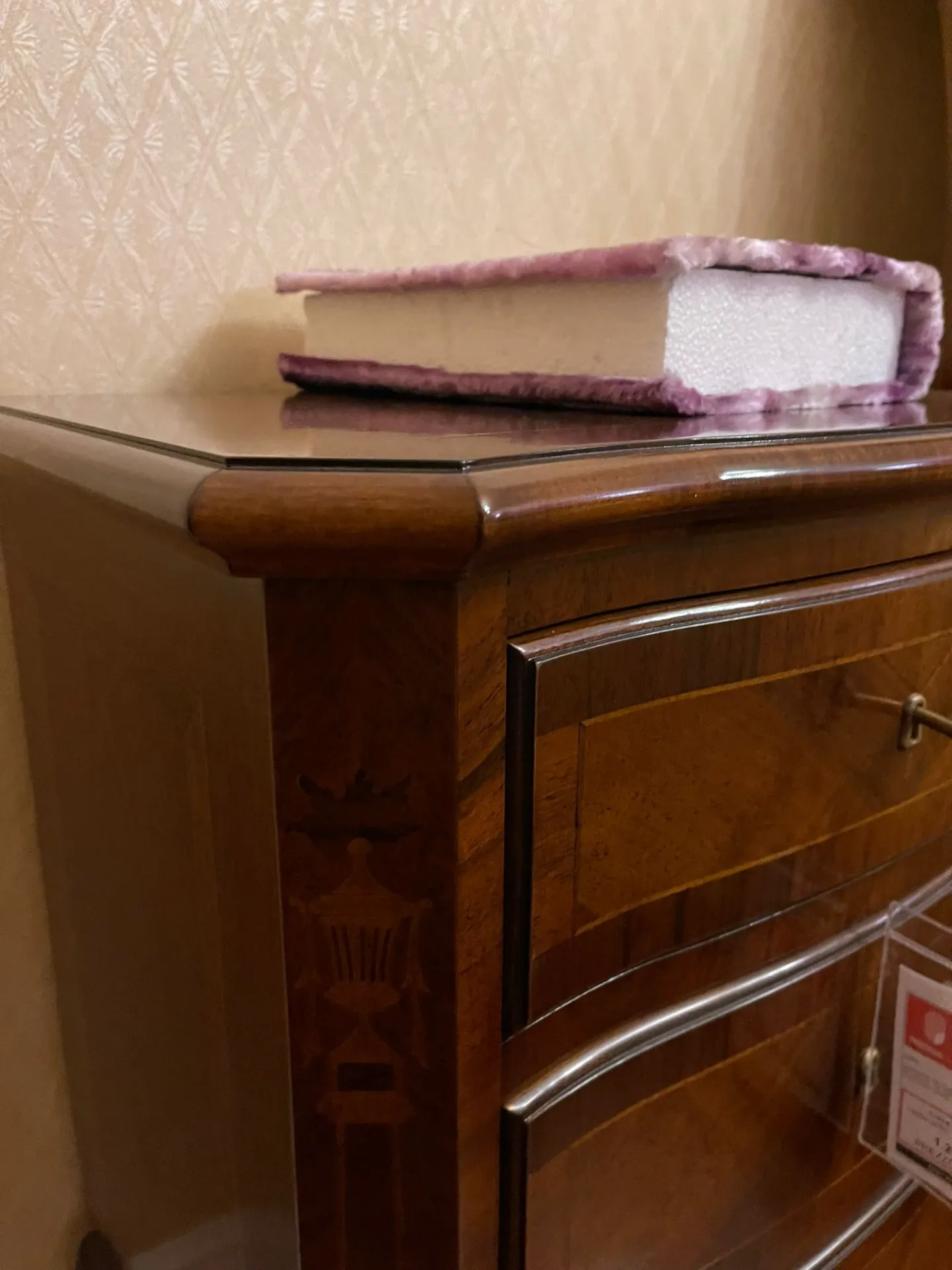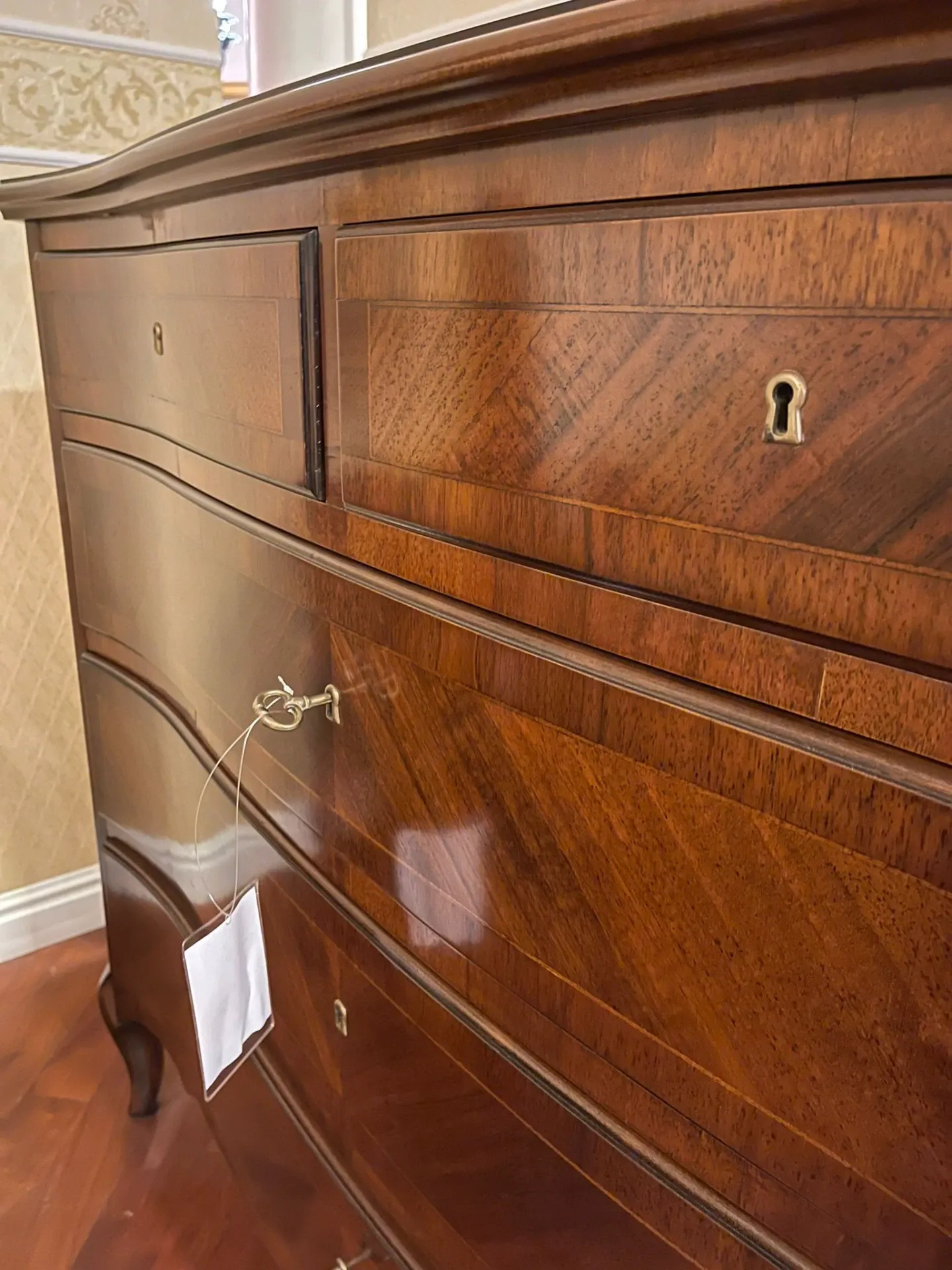 903/DI_COMODINO TRE CASSETTI COLL. 800 FRANCESE L 56 P 40 H 73 FIN. ANTIQUARIATO LASTRONATO NOCE PIANO LEGNO.(N°2)