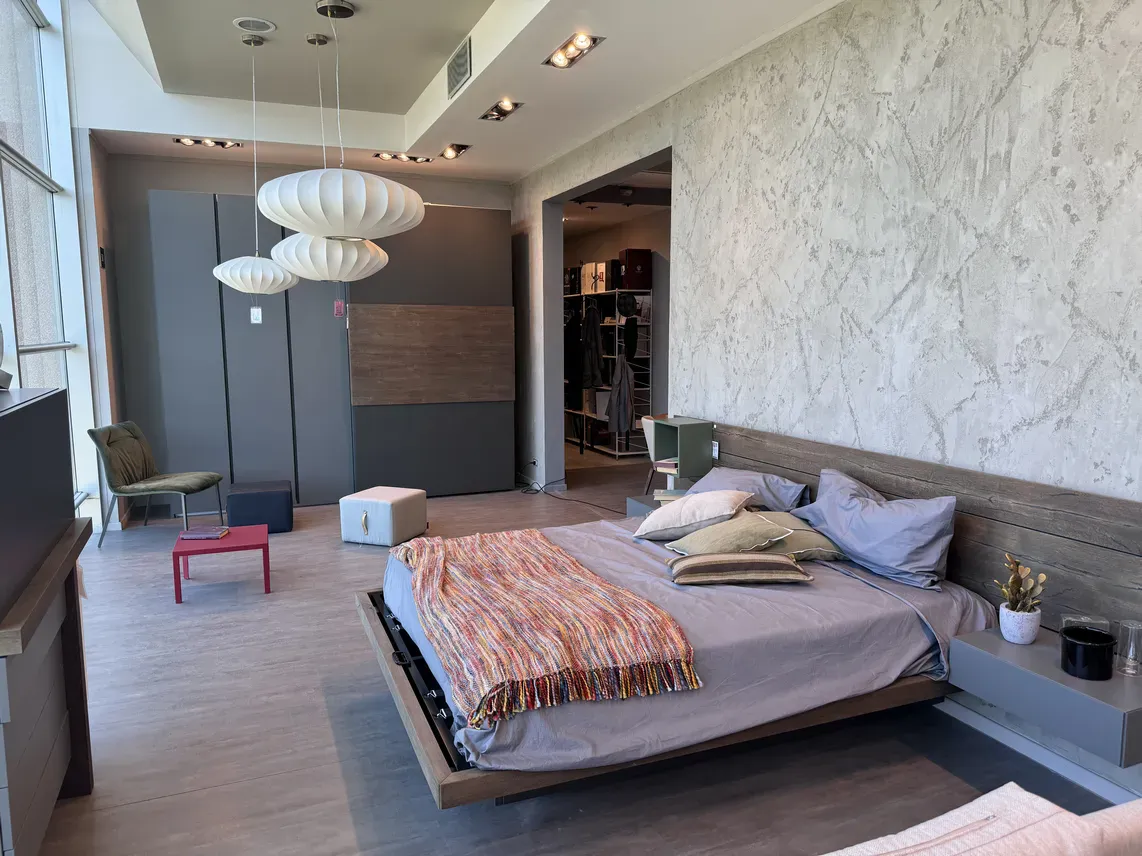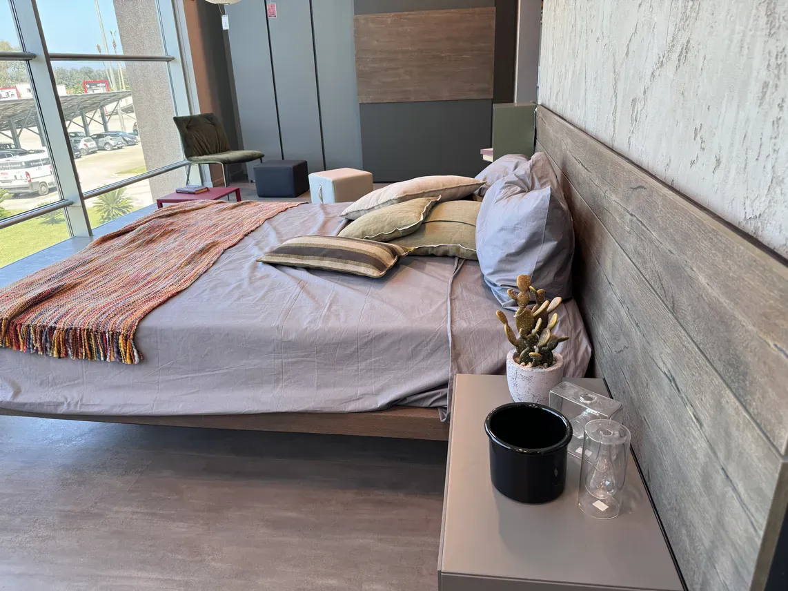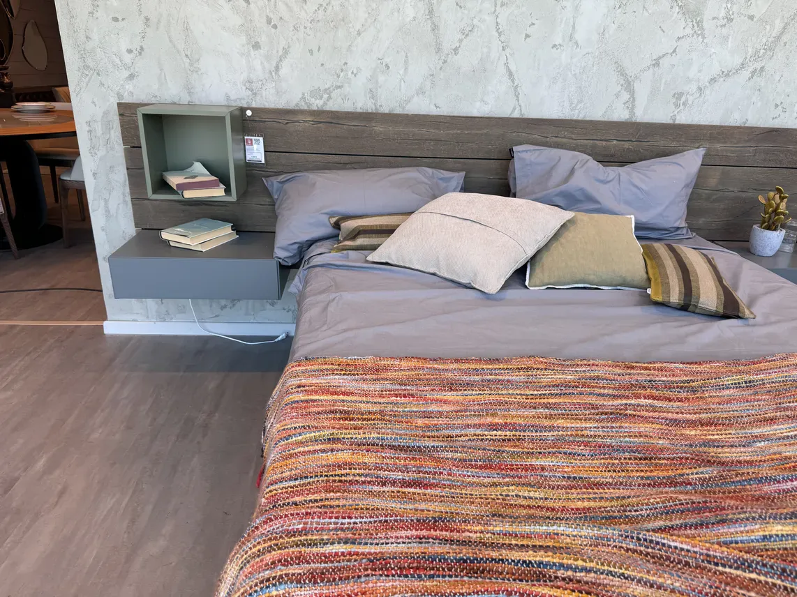 LETTO- LET. SORVOLO QUERCIA_LETTO CONTENITORE MOD. SORVOLO L.320 P.219 H.91 FINITURA QUERCIA 75G CONTENITORE ARDESIA CON CONTENITORE BOX PLAN COLORE KAKI E 2 COMODINI L.59 COLORE FUMO CON LED