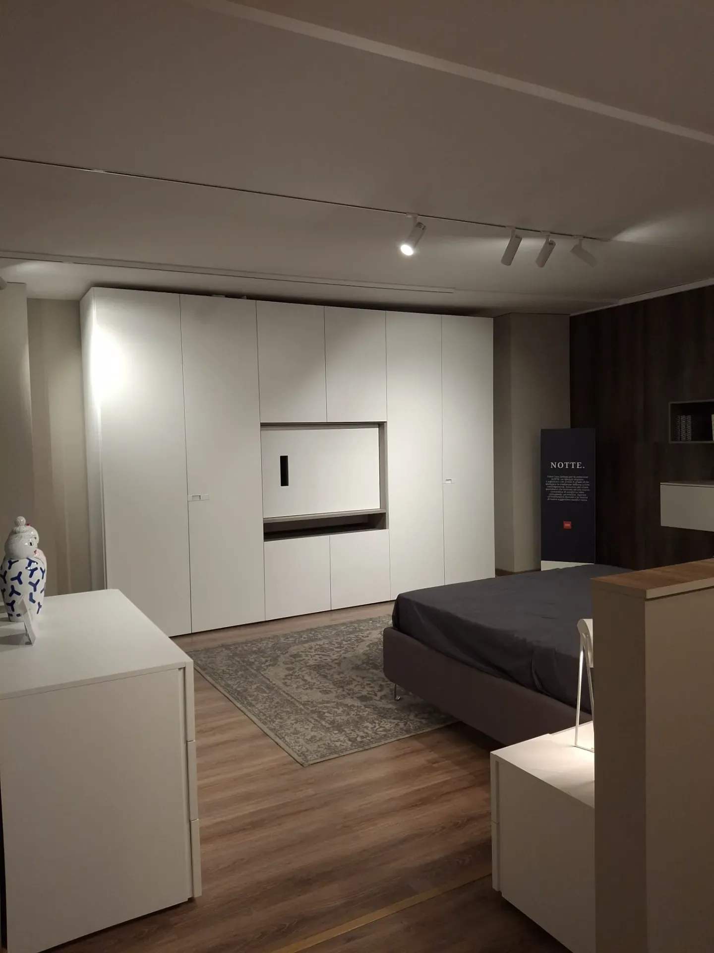 Camera da letto Febal Linea Notte in finitura laccato opaco bianco neve, composta come segue.