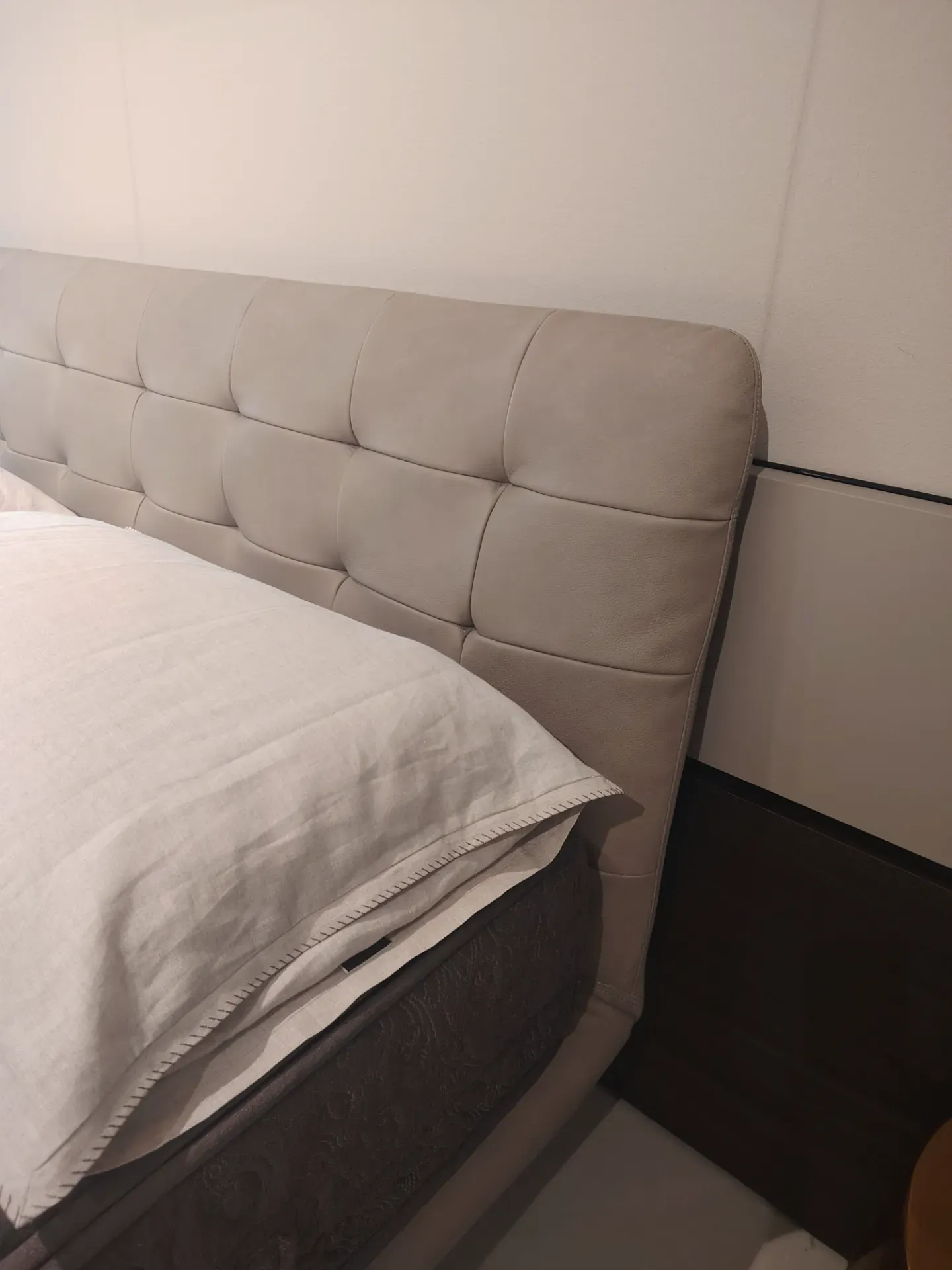 Composizione gruppo letto Pianca composto da boiserie laccato opaco più legno, serie di cassetti di varie dimensioni e finture, letto Filo in pelle vintage com piedini trasparenti, armadio 6 ante Manhattan con 4 cassetti interni e ripiani per ogni vano, finitura interna perlage, maniglia titanio lucida.