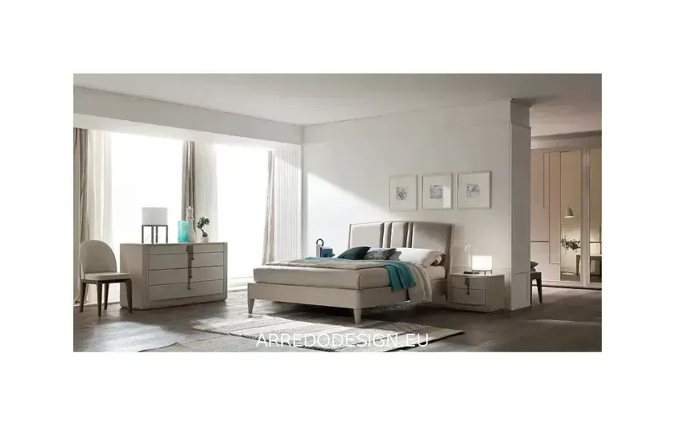 Arredo design srls. Propone di Fasolin, la camera Flor impreziosita da una dolce bombatura dei comò e comodini, il letto imbottito e l'armadio a specchi con profili in rilievo, la verniciatura che lascia intravedere le naturali venature del legno rendendo questo prodotto prezioso e intramontabile.