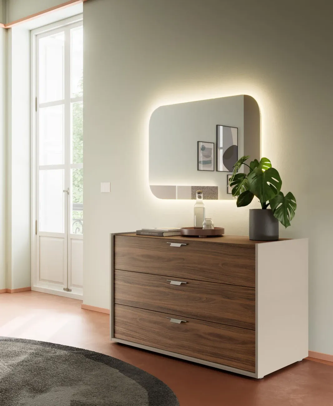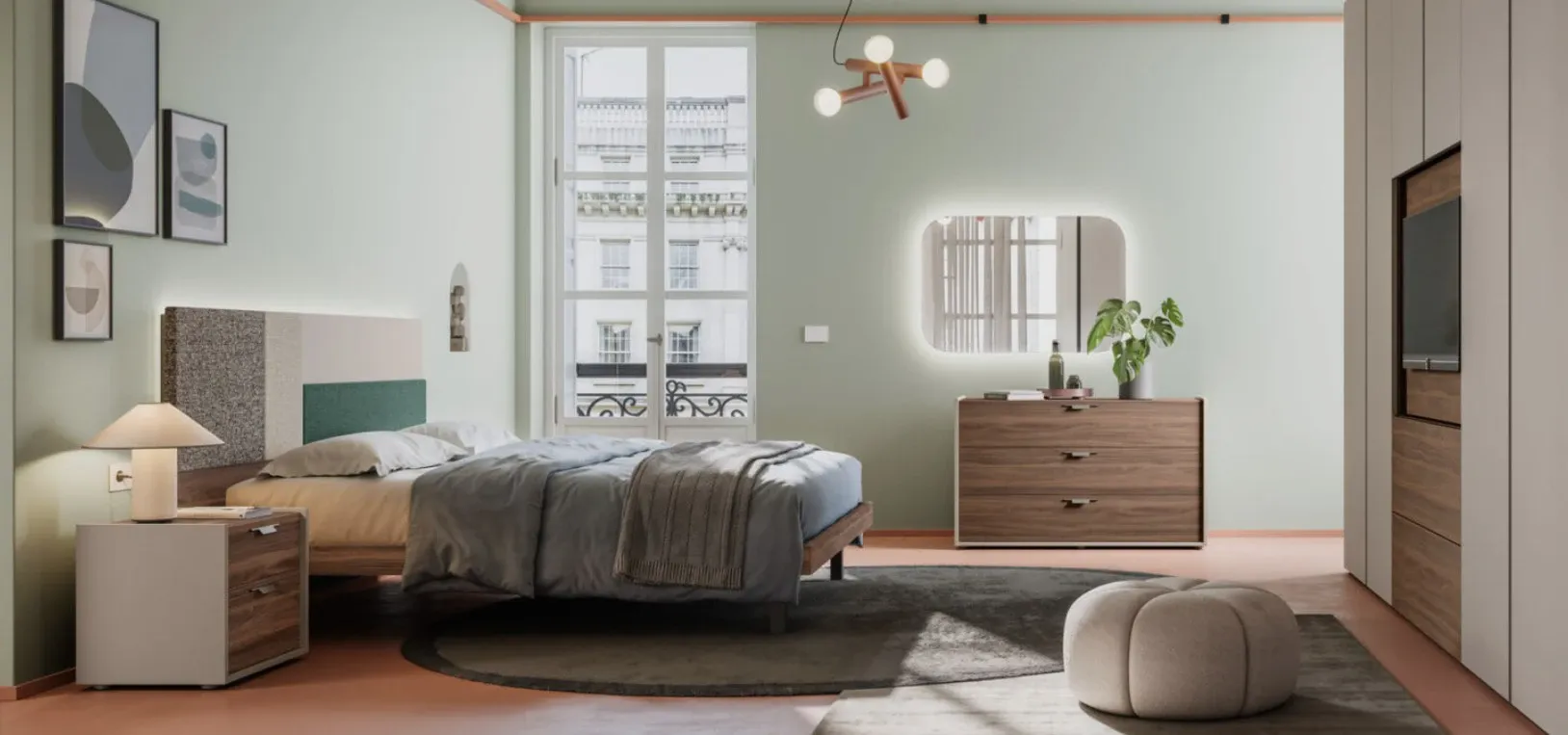 Una soluzione elegante e funzionale che unisce grande capacità contenitiva e stile contemporaneo, perfetta per una camera da letto accogliente ed ordinata.