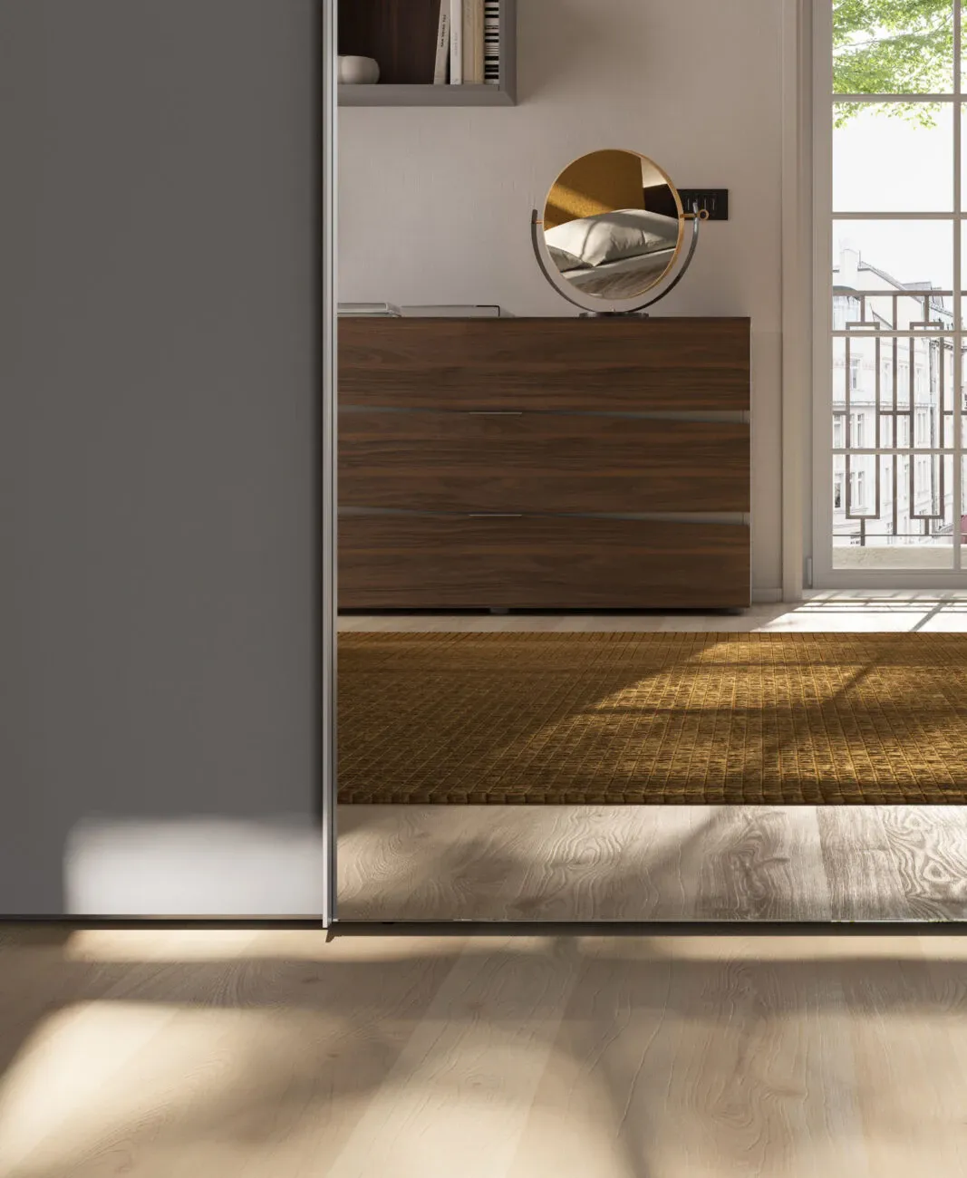 Interno armadio scorrevole: l'interno è dotato di serie di un ripiano e due tubi appendiabito per ogni elemento.