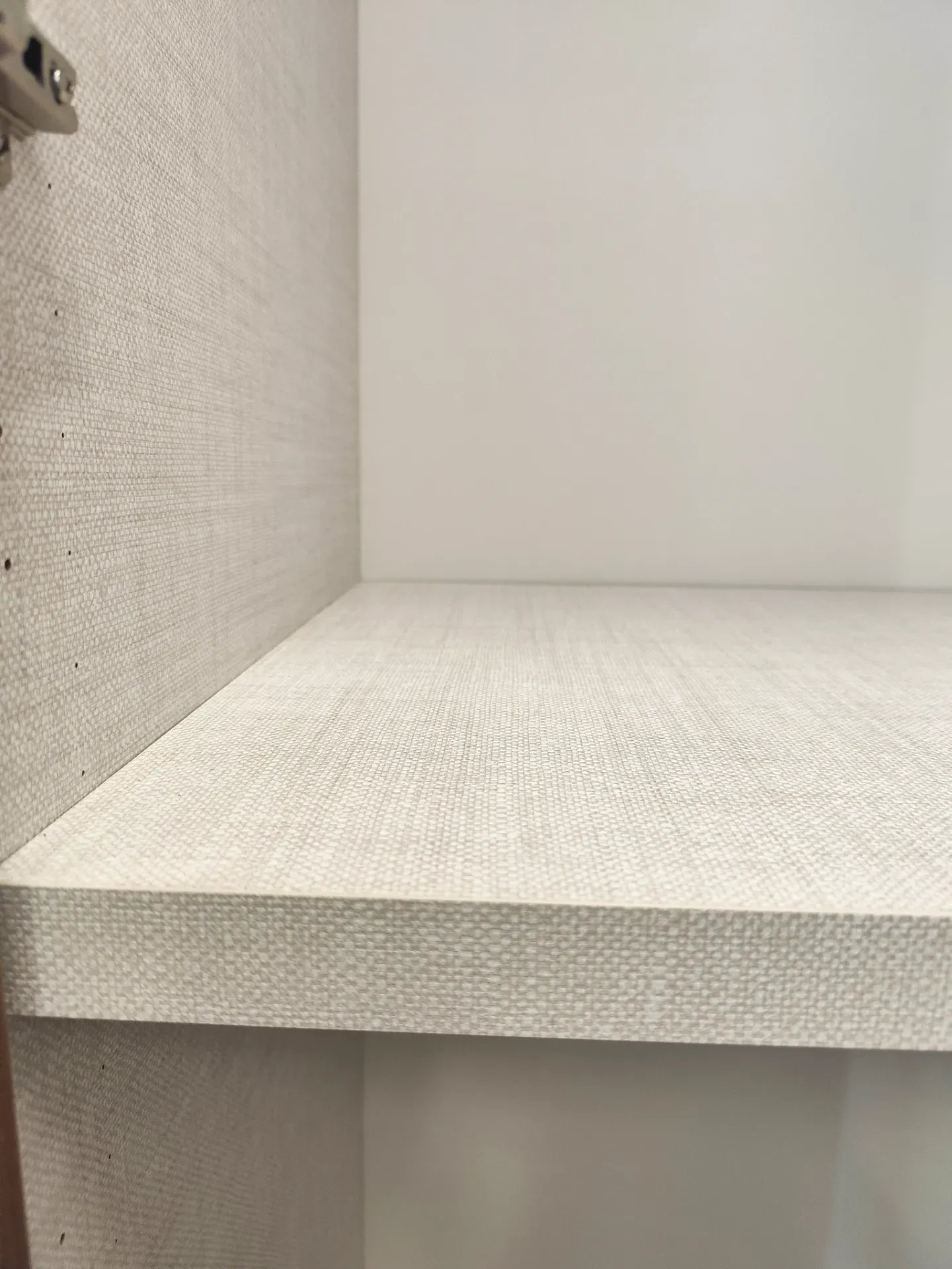 Presenta un gioco di colori e finiture: Noce Dark, Calce ed effetto tessuto.