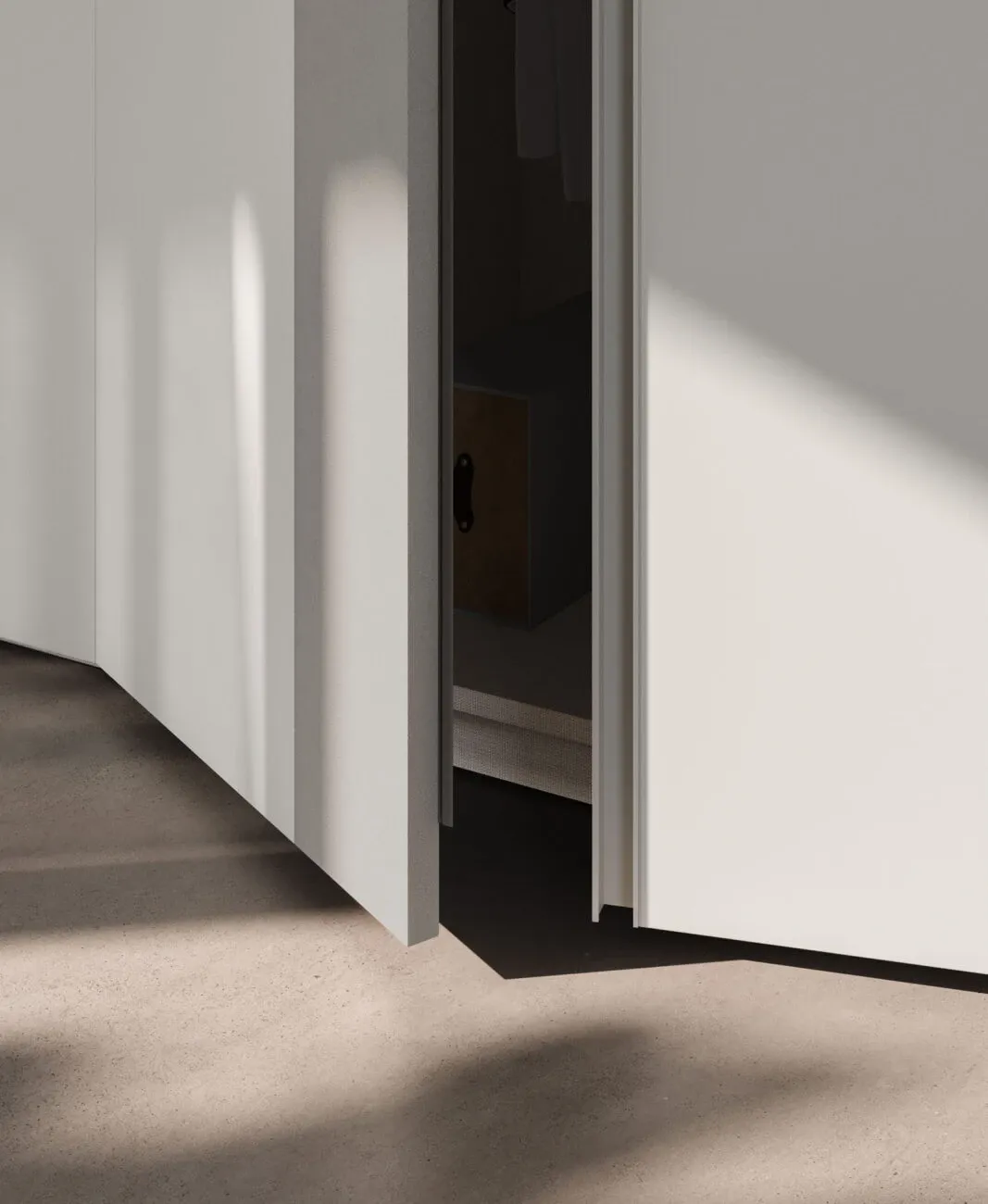 Qesto modello è disponibile con armadi con vari tipi di ante Scorrevoli o ad Ante battenti, in molte finiture e con una vasta gamma di accessori interni.
