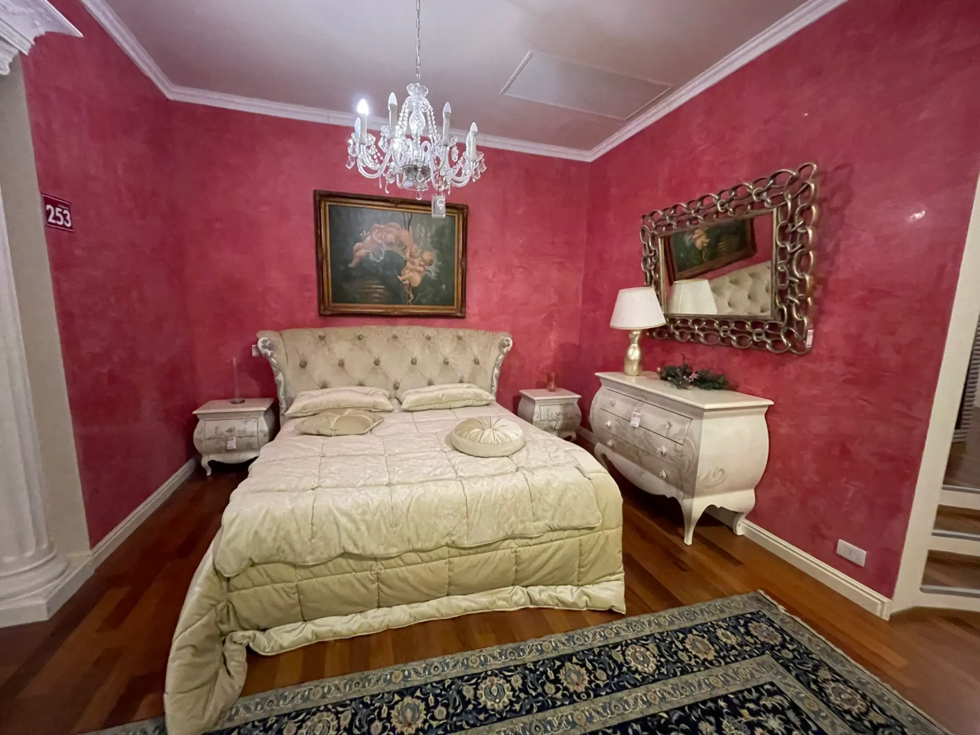 CAPRI LETTO_LETTO MATRIM. MOD. CAPRI KING L.213 P.233 H.136 FINITURA GARDENIA INVECCHIATO CON GRIGIO E ARGENTO CON TESTATA IMBOTTITA TESSUTO CAT.B E GIROLETTO SAGOMATO IN LEGNO