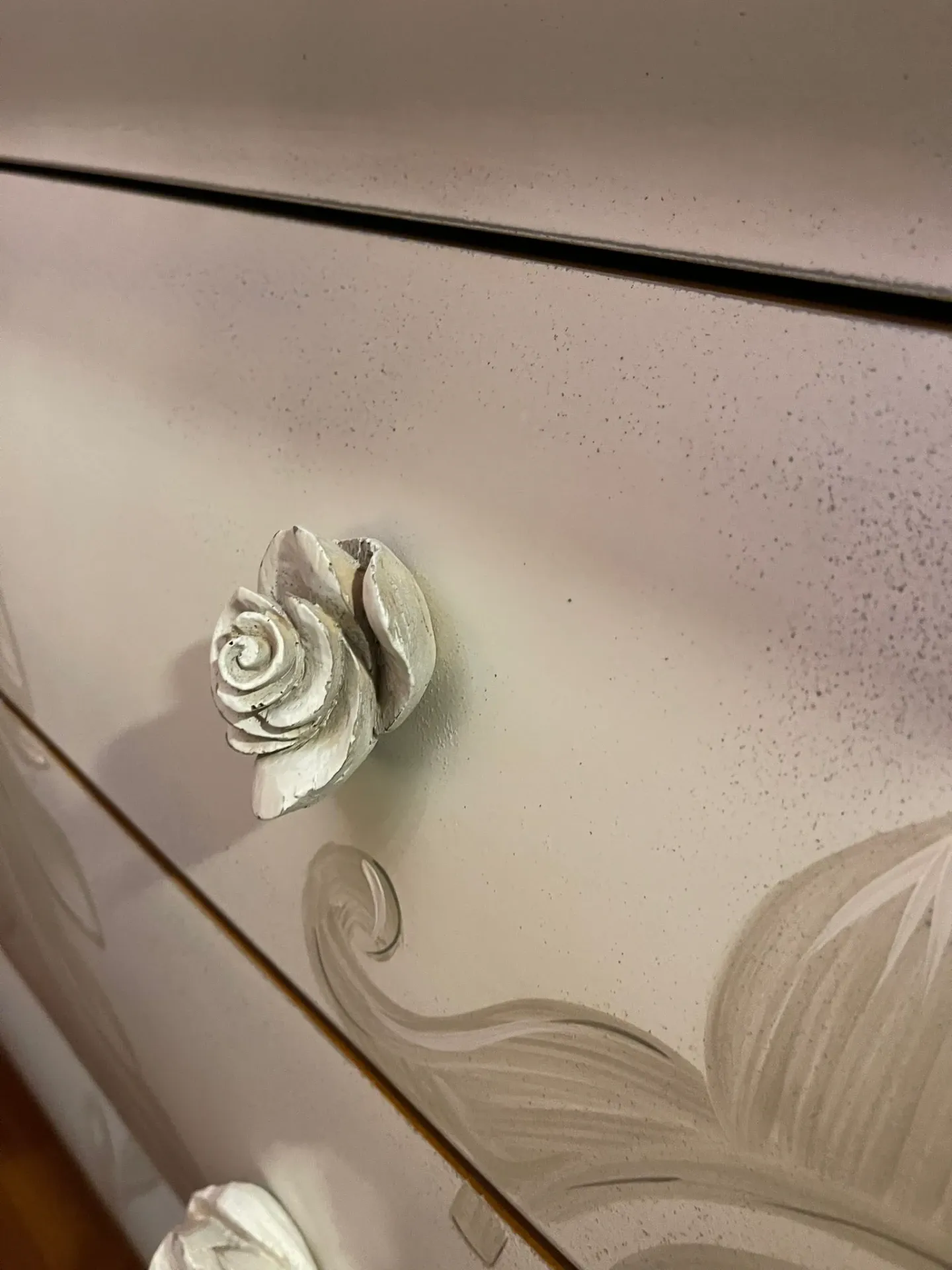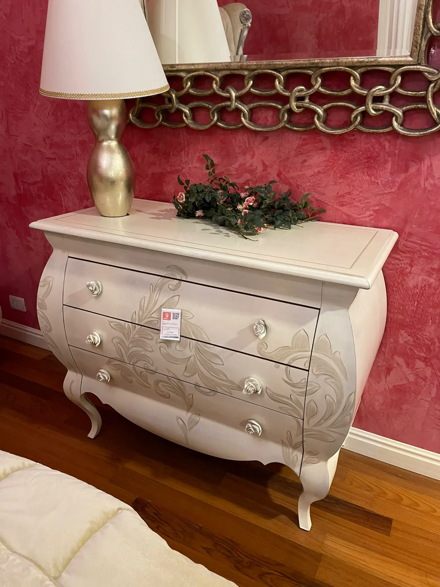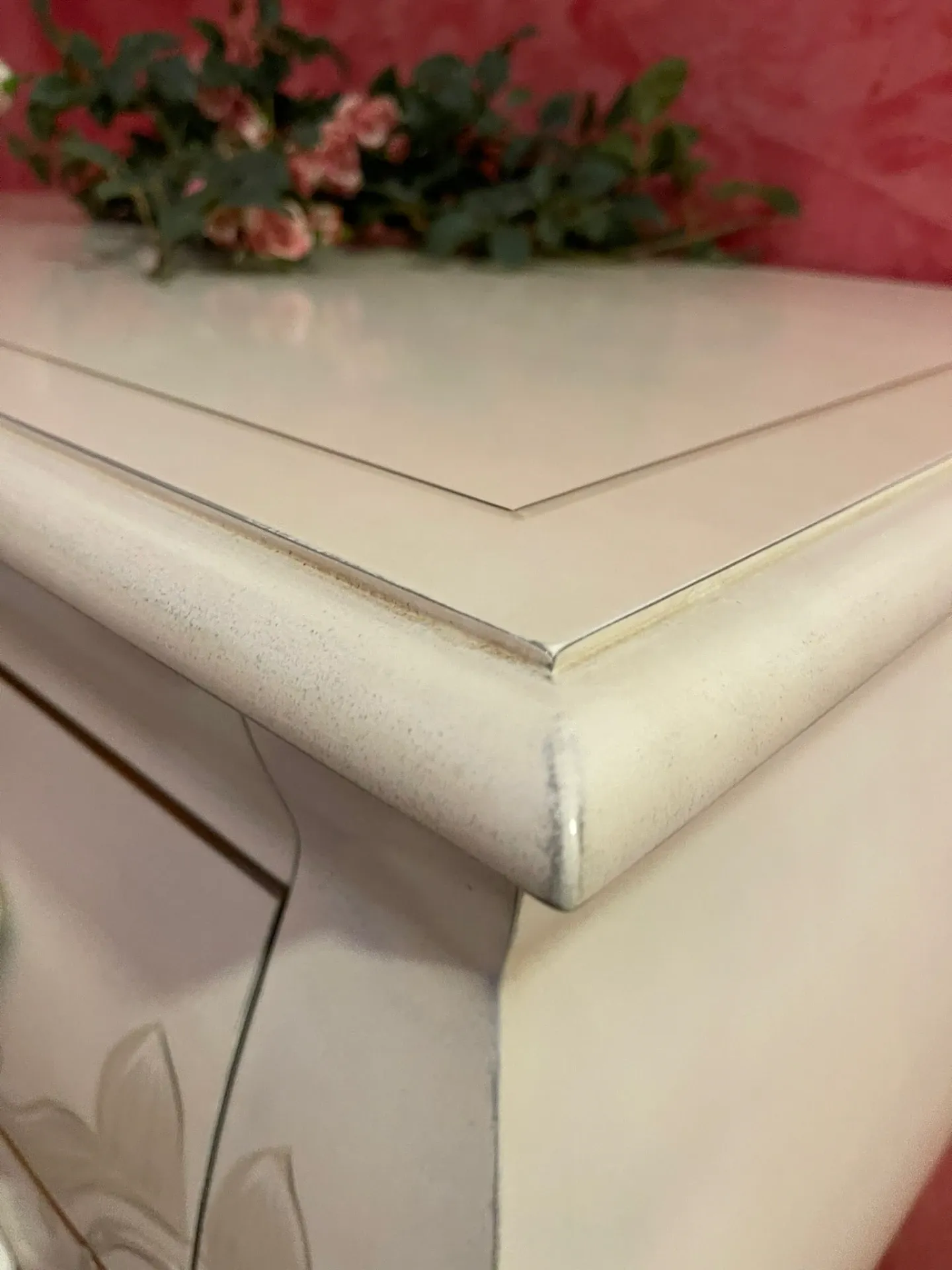 2642_COMODINO MOD. DILETTA L.55 P.38 H.60 FINITURA GARDENIA PATINATO DECORO DF - POMELLO ROMANTICO(N°2)