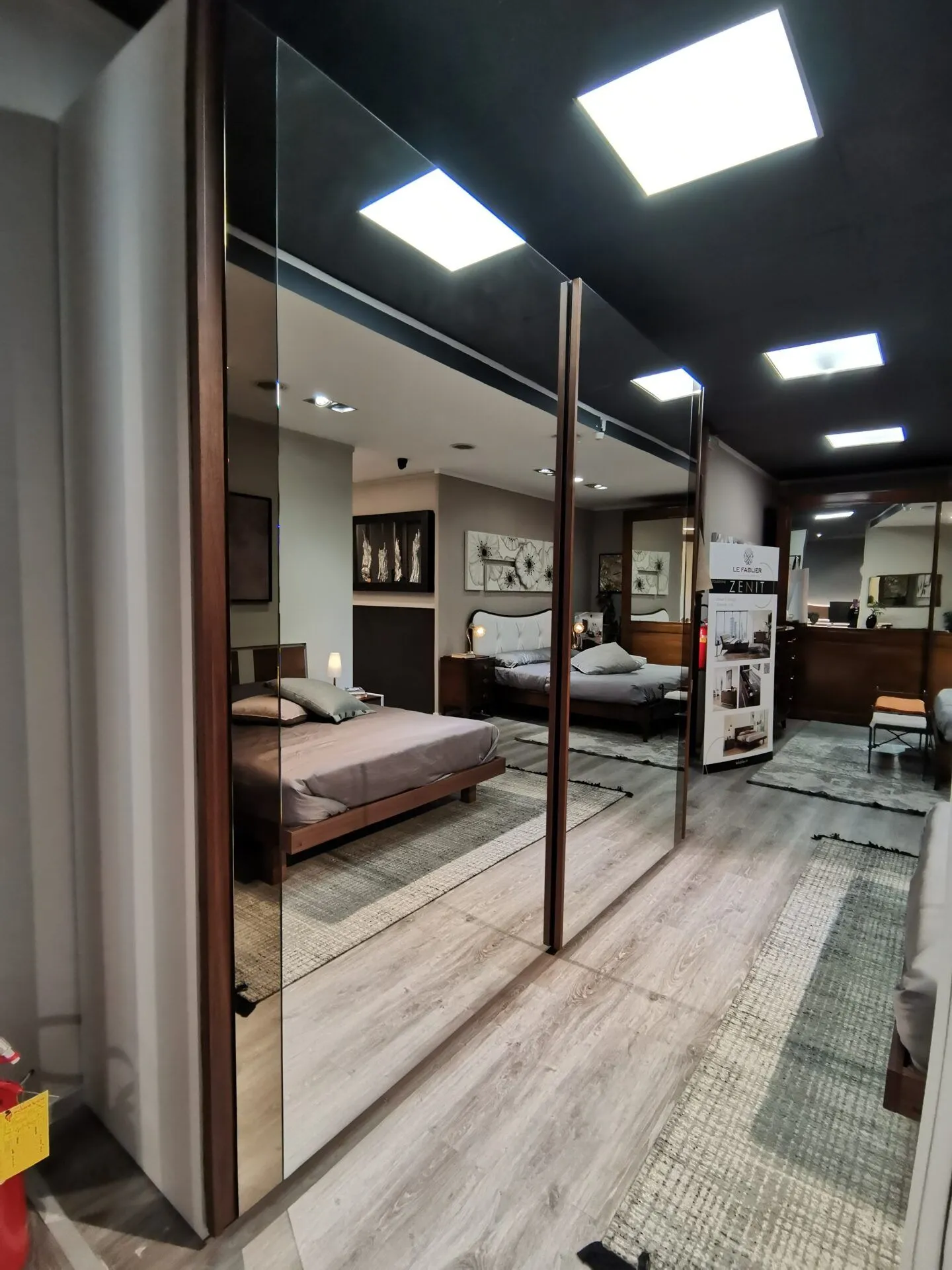 Armadio CASCATA 2 ante specchio scorrevoli, L 283 P 68 H 250 cm. Attrezzatura: cassettiera 4 cassetti con ripiano lungo superiore e ripiano corto, 1 ripiano lungo, 2 tubi.