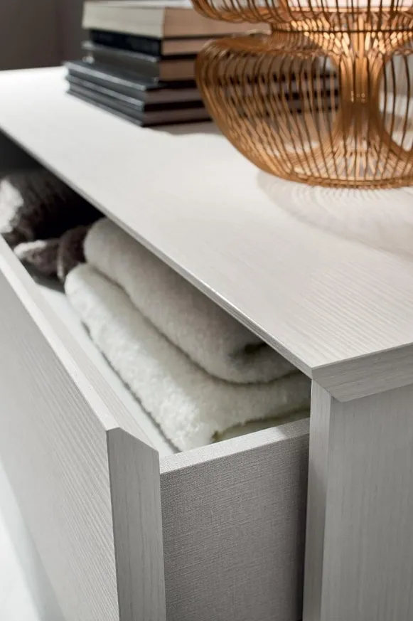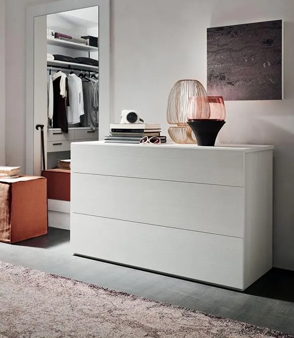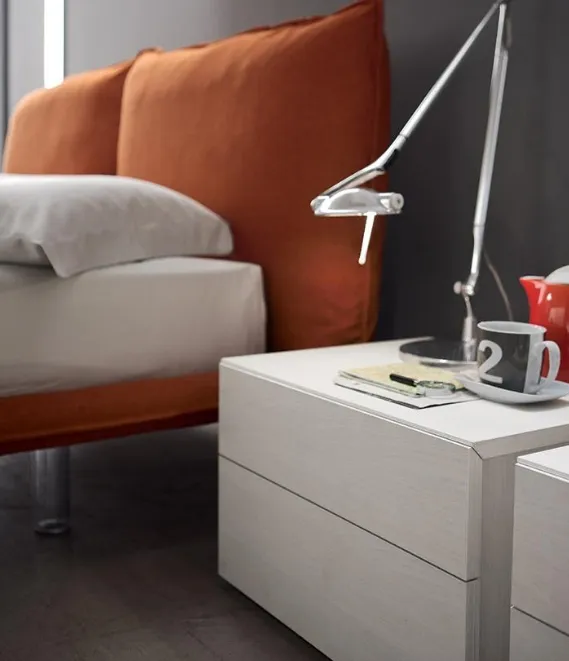 Questo gruppo letto dal design moderno è impreziosito dal taglio a 45 gradi sul primo cassetto e sul top. Il prezzo nell'offerta si riferisce al singolo comodino nella finitura melaminico in tutti i colori proposti , questa promozione comprende anche il comò (€ 375,00) e il settimino (€ 380,00). Tutti i pezzi sono disponibili in offerta anche nelle finiture frassino colore e laccato opaco : comodino € 275,00, comò € 650,00, settimanale a 6 cassetti € 550,00 e nella finitura laccato lucido: comò €750,00. comodino € 300,00 e settimanale €590,00 . Tutti i cassetti sono dotati di chiusura rallentata. Le misure sono: comodino L 56.7 x H 48.20 x P 44.3 , disponibile allo stesso prezzo anche L 38,2( per chi non ha molto spazio) x H 37.2 x P 44.3. Il comò misura L 121.7 x H 77.3 x H P 54.3 cm. Il settimino L 56.7 x H 106.7 x P 44.3