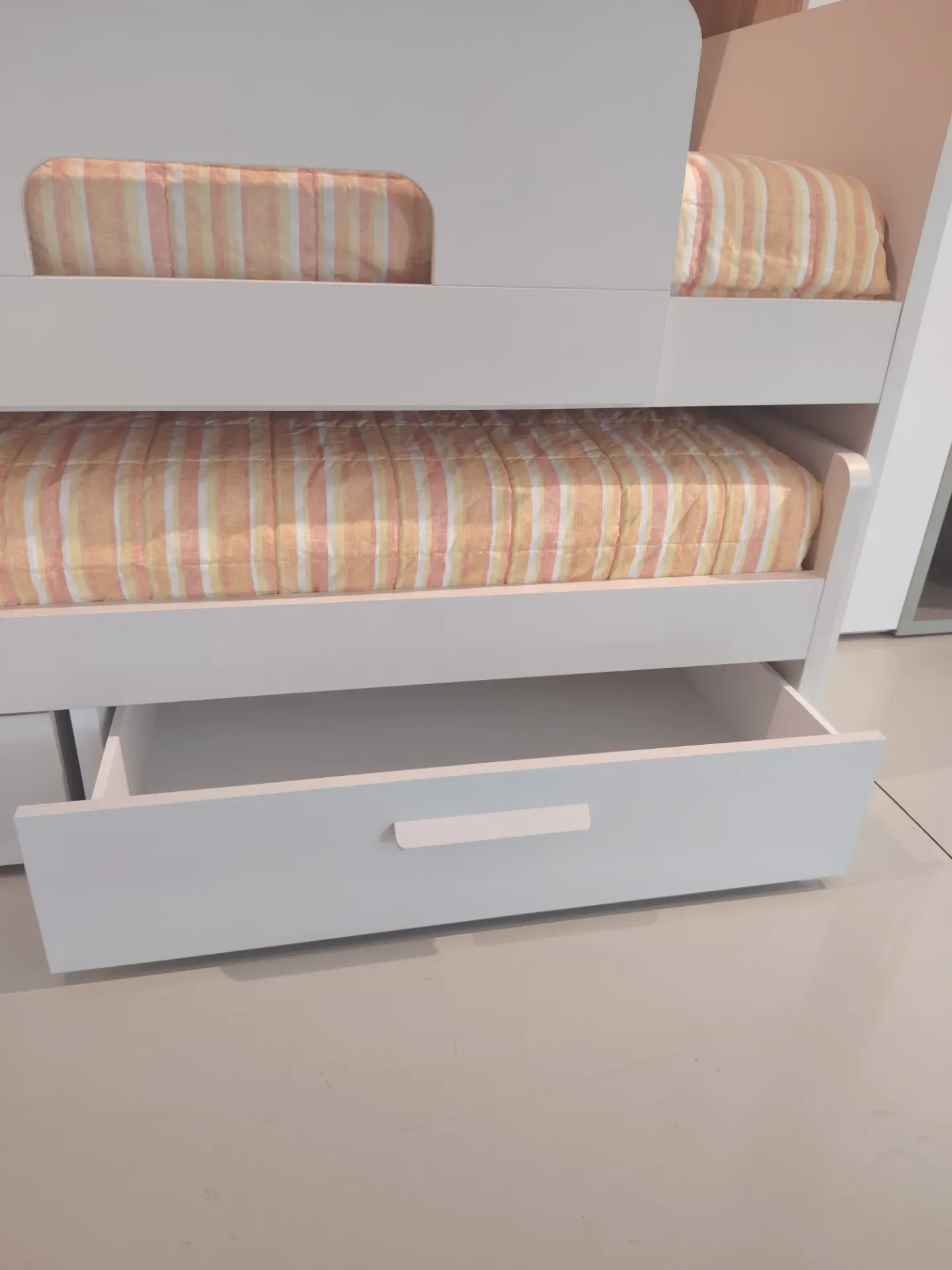- Nella stanza dei piccoli, non solo armadi e comò offrono un multifunzionale e capiente spazio per la sistemazione delle proprie cose, ma contribuiscono pure i cassettoni estraibili: non per altro, il letto incluso nel prezzo è estremamente contenitivo e funzionale.