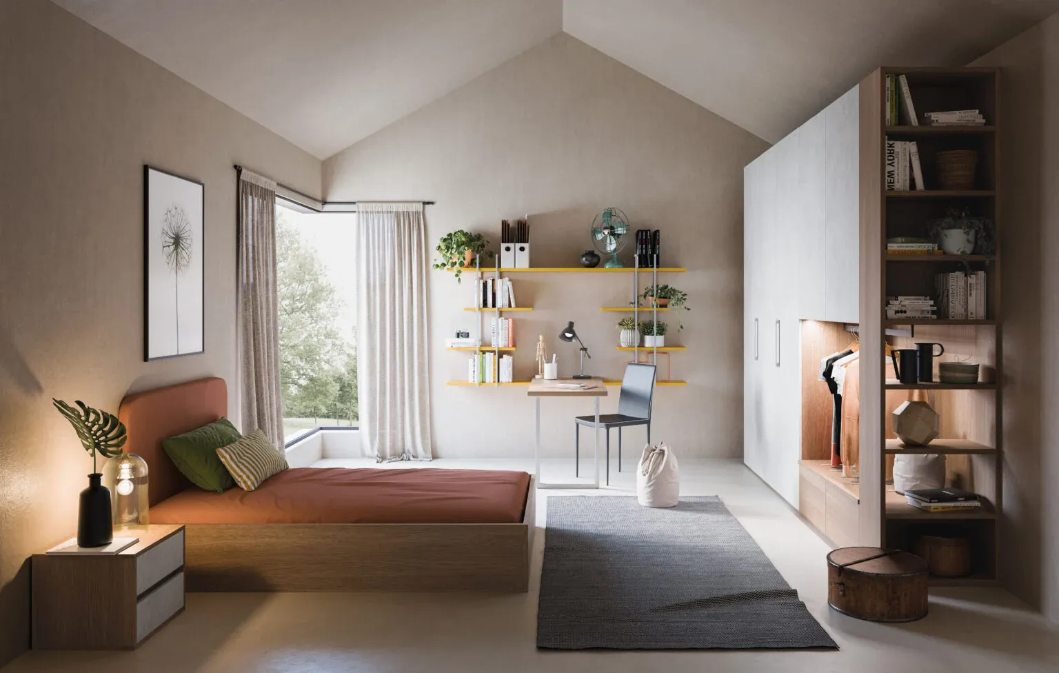 Cameretta componibile del programma componibile mod.Elegant della ditta Corazzin(www.corazzin.it)completa di Letto-singolo mod. Cezanne con box-contenitore,con comodino a 2 acassetti con maniglia con gola(cm.45),completa di armadio a 5 ante con vano a giorno con appendiabiti ed elemento-base a 2 ante,con colonna-libreria terminale di sostegno(cm.332,1 lunghezza x cm.60 profondità x cm.257,5 altezza),completa si composizione con mensole a muro(cm.220 lunghezza)con sostegni in metallo mod.Job nella finitura brunita, e di piano-scrittoio(cm.135 x cm.60 profondità)con sostegno in metallo nella finitura: Nichel. E' disponibile nelle misure e nelle finiture a scelta del campionario. Viene prodotta con materiali di alta qualità con l'impiego esclusivo di pannelli ecologici classe E1 e con l'utilizzo di vernici ecologiche a base d'acqua,prive di solventi che possano nuocere alla salute. Il prezzo-promo è compreso del trasporto e del montaggio,in tutte le Regioni d'Italia. Per qualsiasi informazione,potete contattarci attraverso il nostro indirizzo di posta elettronica.