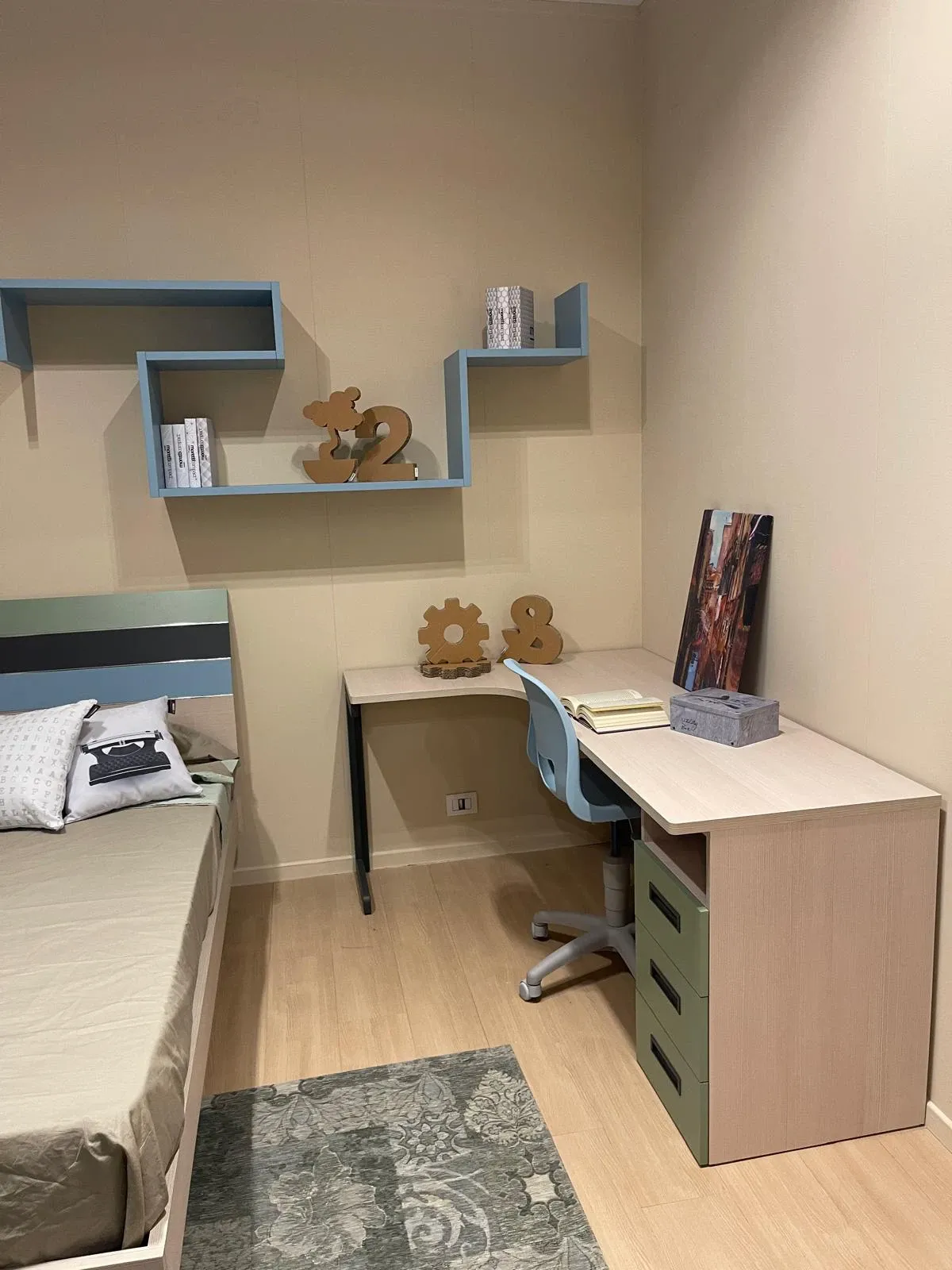 Composizione arredativa per lo spazio junior di grande qualità. Trasporto escluso per questa proposta.