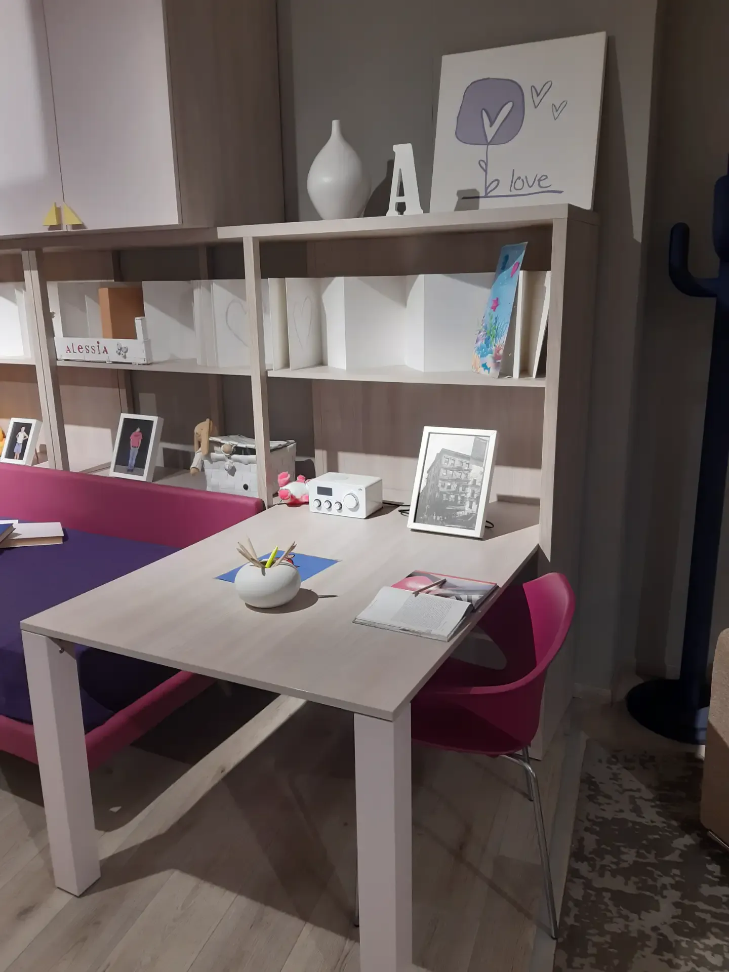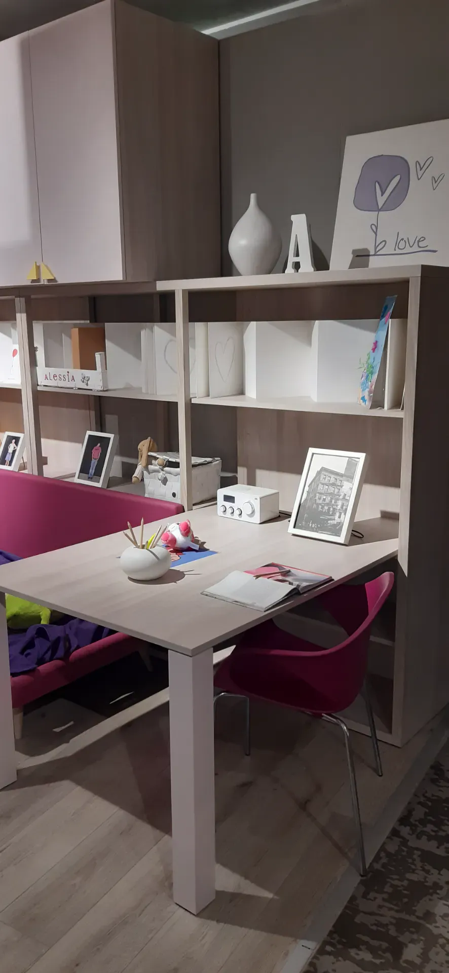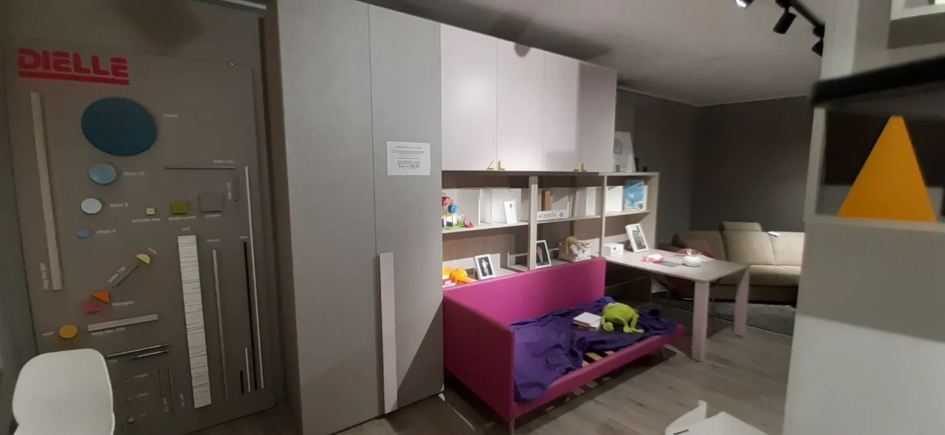 Per ricreare le atmosfere ideali per il regno dei giovani, opta per camerette dalle tonalità più intense e dalle linee sinuose, affinchè l'ambiente possa trasmettere vitalità e serenità; il marchio ha scelto un materiale tanto pregiato quanto resistente per questa cameretta Dielle box 1, ovvero il laminato opaco, tale da completare l'estetica della stanza completandone pure le doti pratiche.