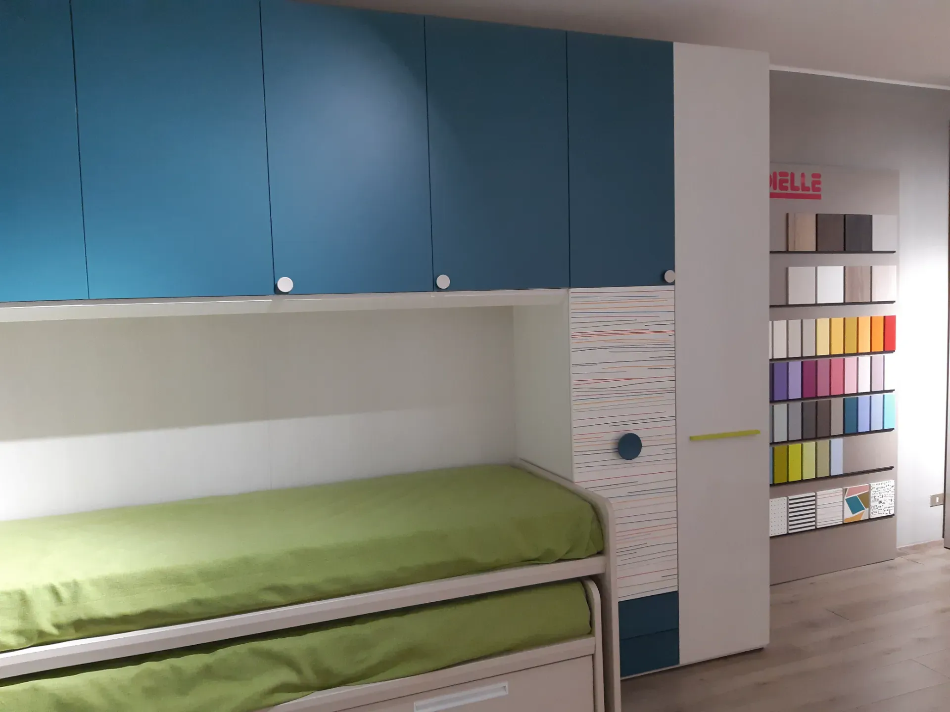 Per la cameretta Dielle box 4, il brand ha selezionato un materiale di grande valore: il modello qui visibile è realizzato in laminato opaco, adeguato per ultimare esteticamente la stanza dei giovani assicurandoti, contemporaneamente, di avere sempre disponibile tutta la contenitività di cui hai necessità; questo materiale dall'estetica raffinata saprà impreziosire il regno dei giovani secondo le esigenze dei giovani e custodendo nel tempo le doti estetiche distintive.