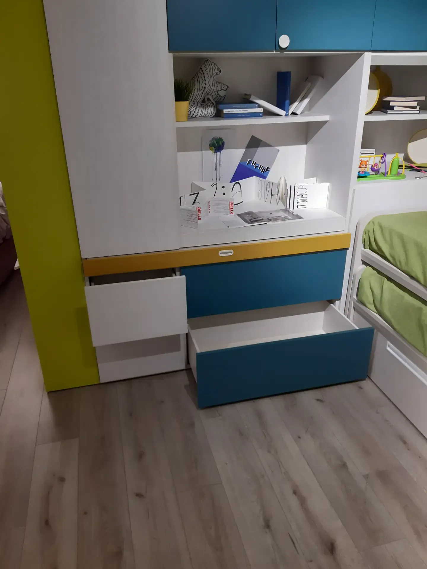Tra le molteplici composizioni della firma, la Cameretta Dielle box 4 Dielle con uno sconto imbattibile regalerà il sonno più profondo ed una serena routine quotidiana ai tuoi figli. La cameretta è il luogo che più rispecchia l'animo dei giovani: con un ribasso imbattibile sul modello Dielle box 4, potrai ultimare perfettamente l'ambiente dove i tuoi bambini diventeranno grandi.