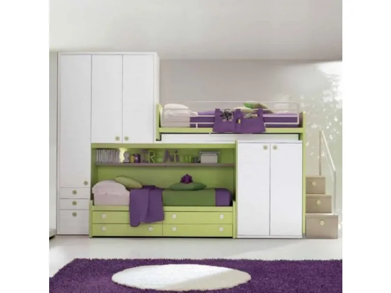 Cameretta a soppalco modello Luna scorrevole composizione 968 personalizzabile nelle misure e nelle finiture, dotata di comodo camminamento retro castello.