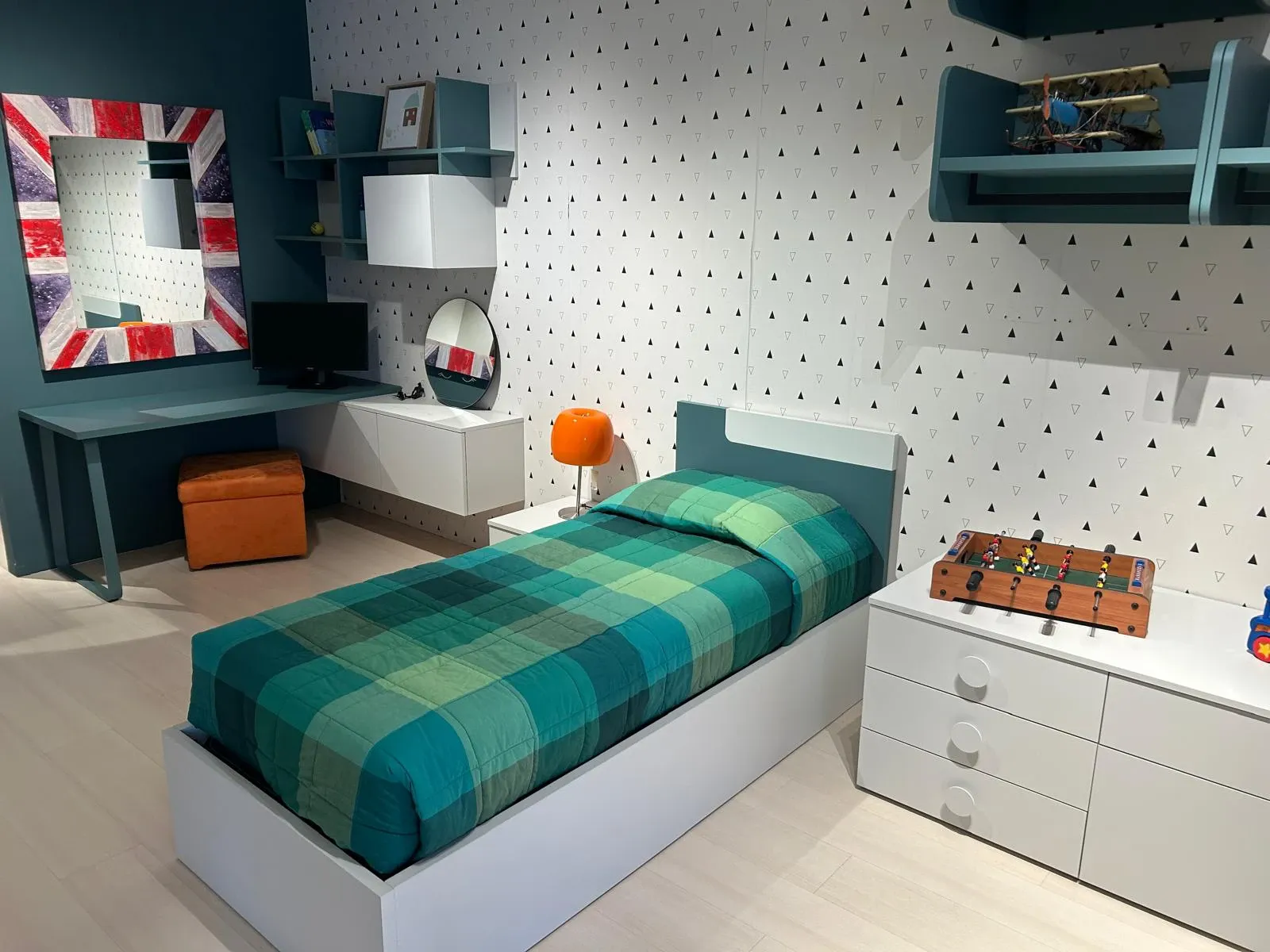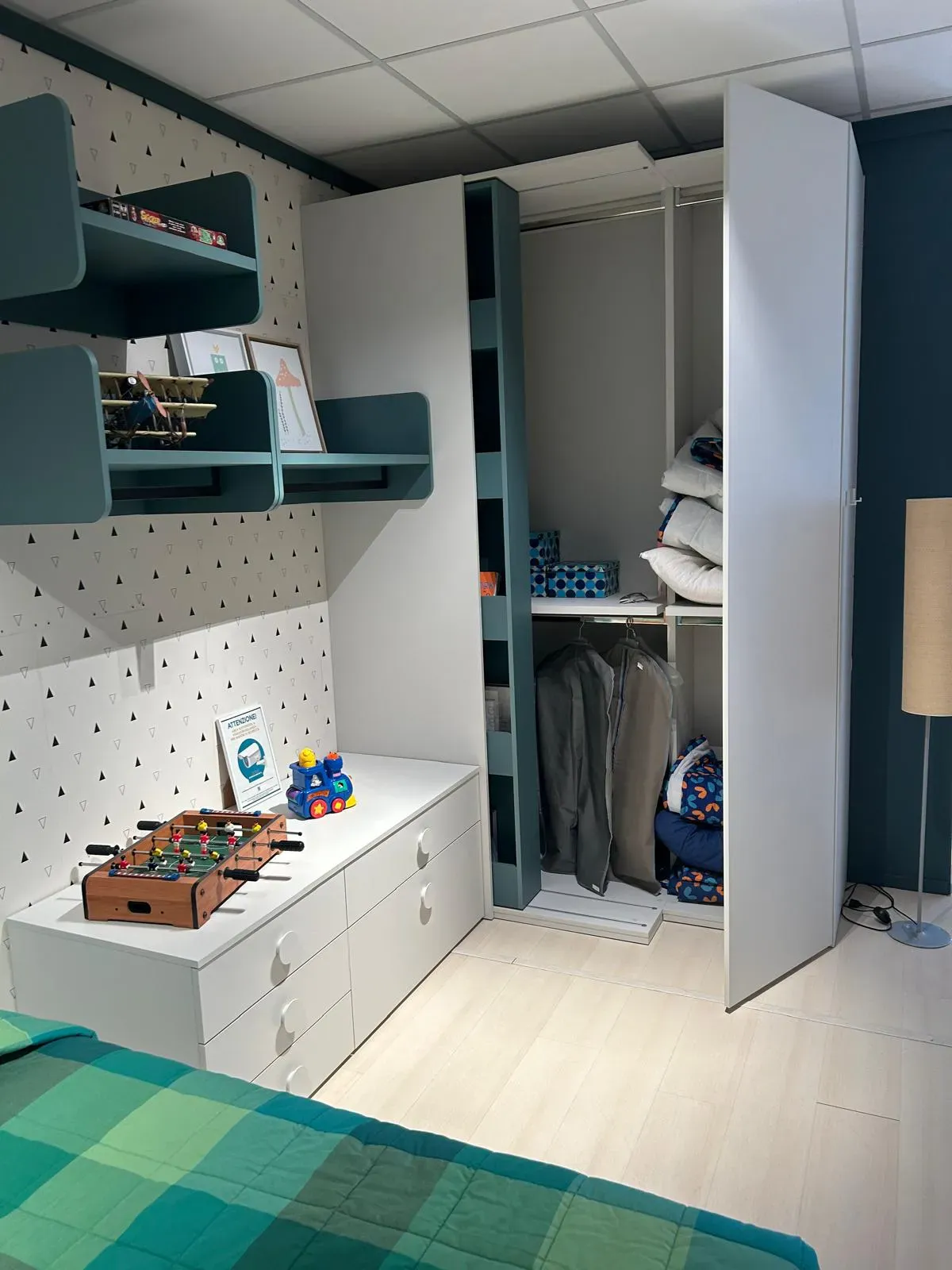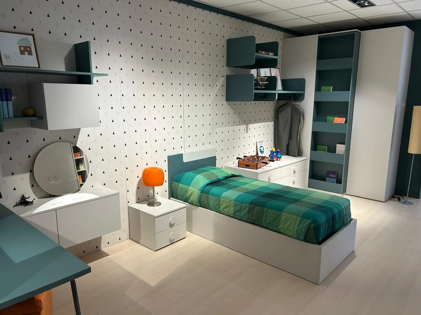 Questa bellissima CAMERA PER RAGAZZI, E' ESPOSTA E VISIBILE PRESSO LA NOSTRA ESPOSIZIONE. Questa camera per ragazzi è composta da un armadio con libreria scorrevole le cui dimensioni sono: larghezza cm.181, altezza cm.260, profondità cm.60. La cameretta si compone inoltre di un letto con contenitore, uno scrittoio larghezza cm.150x61 ed elementi sospesi con libreria e modulo con ante. Il prezzo è assolutamente vantaggioso in quanto l articolo è di esposizione e abbiamo l'esigenza di usufruire di spazi per proporre ambientazioni nuove. Contattaci per tutte le informazioni che ti sono necessarie. Il prezzo si intende inclusa IVA ed inclusa la spedizione. E' escluso il montaggio che comunque possiamo effettuare nelle province di Milano, Monza e Brianza, Varese e Como (E.390,00). Per ulteriori chiarimenti e informazioni potete contattarci al 0362-642435 e per vedere l'articolo esposto nel nostro show room potete anche raggiungerci, siamo a Cesano Maderno (MB) via Cesare Battisti,21a. RICEVIAMO SOLO SU APPUNTAMENTO. Visitate il nostro sito 2000arredamenti.it e le nostre pagine social di Facebook e Instagram '2000 Arredamenti'. 2000 Arredamenti è rivenditore di camerette sicure e su misura in provincia di Milano e Monza e Brianza. Guarda le recensioni su Google e su Facebook. EFFETTUIAMO SPEDIZIONI IN TUTTA ITALIA.