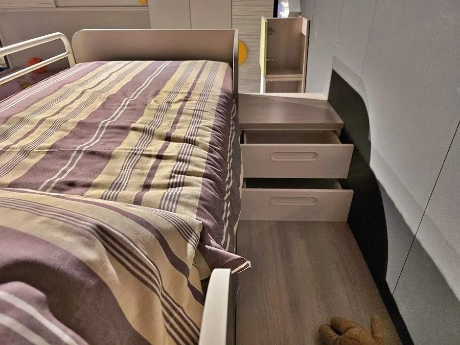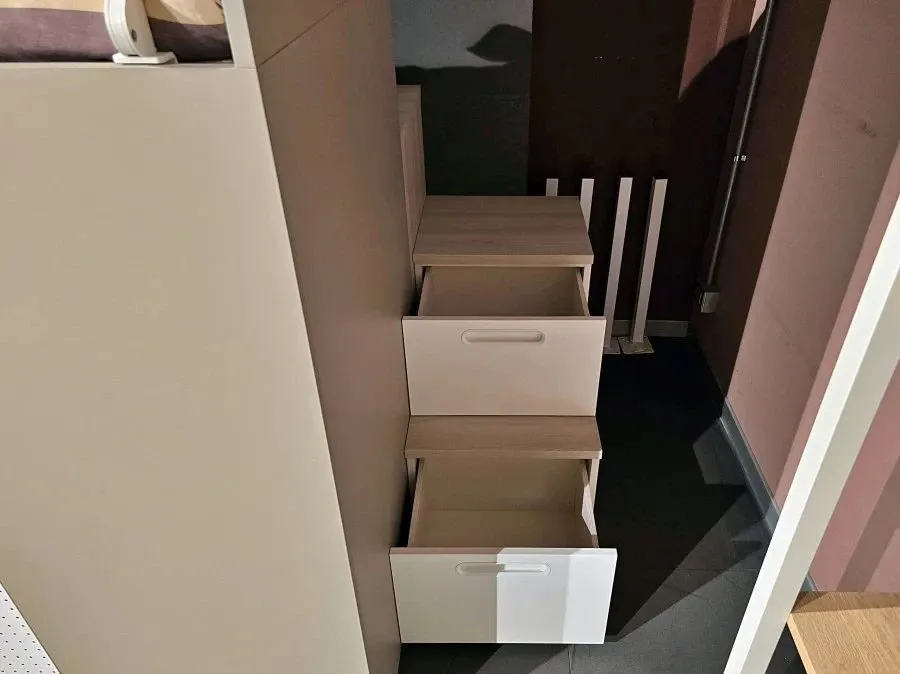 Tra i materiali di alta qualità scelti dal brand per la sua linea di mobili per la zona notte dei più piccoli, spicca il laminato materico utilizzato per questo modello di cameretta con soppalco e container Dielle. Questo materiale offre soluzioni pratiche ed estetiche, garantendo un design unico, resistenza nel tempo e solidità strutturale. Questa proposta di grande valore segue una linea stilistica peculiare, ideale per soddisfare le esigenze di chi cerca un prodotto durevole e dal design accattivante.