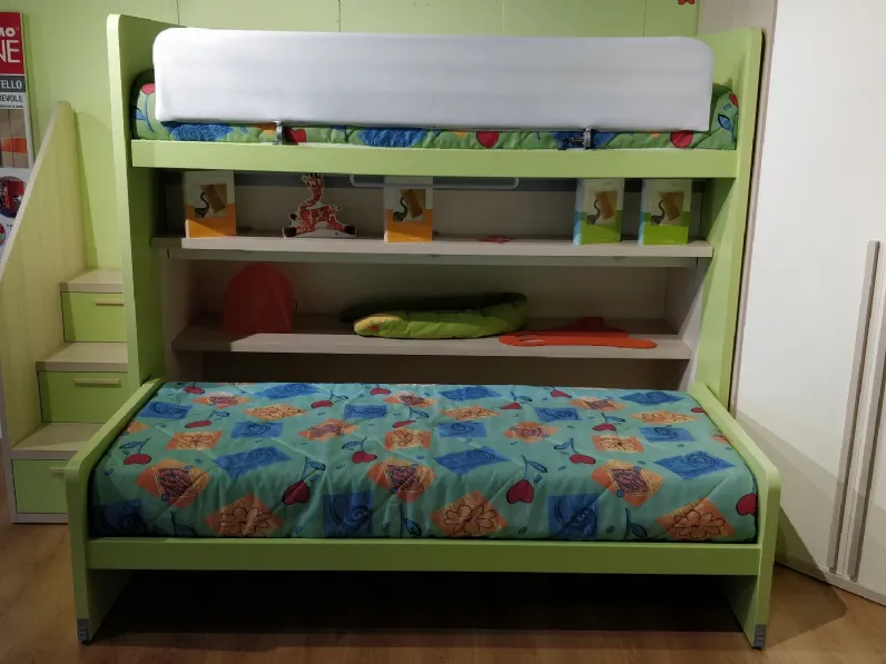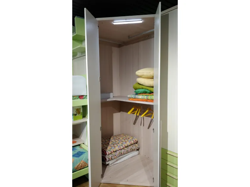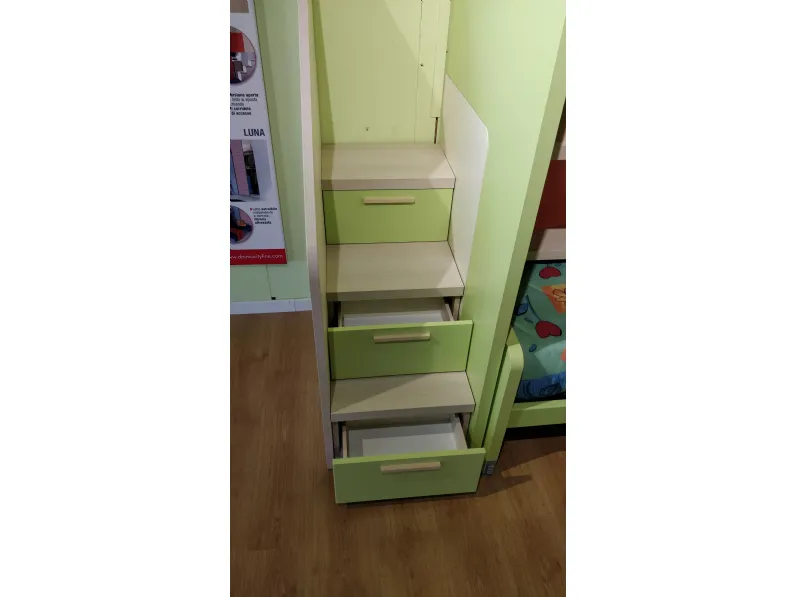 Offerta cameretta Doimo City Line modello Qik. Colori panna, legno larice e verde germoglio. Composizione completa di letti a castello mod. Luna con gradini laterali e pedana posteriore, armadio con cabina, scrivania, cassettiera e mensole. Misure: castello con gradini L.258 P.90 (135 aperto), cabina L.119x162 H.264, armadio con cassetti L.60 H.264, scrivania L.150 P.68 Prezzo di Listino: 7.990 Offerta: Prezzo Scontato 3.590 Dal prezzo sono esclusi sedie e materassi. Il prezzo è incluso di I.V.A. Sono esclusi i costi di un eventuale trasporto e montaggio. L'offerta è valida per la composizione esposta. Il saldo deve avvenire prima della consegna.