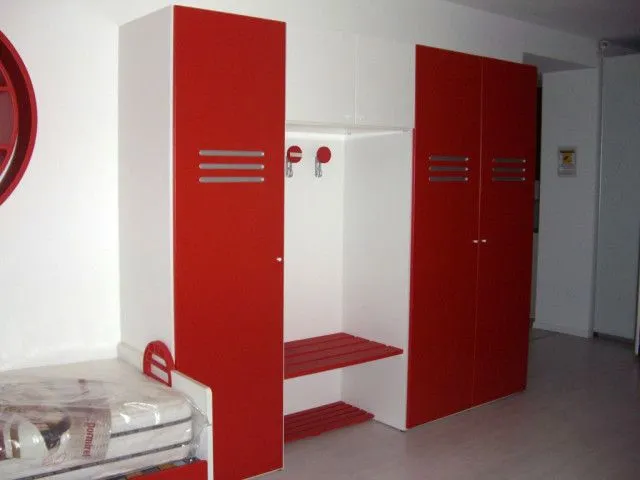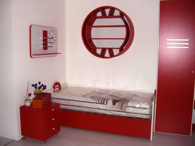 La Cameretta Faer fa parte del gruppo cucine Lube. Comprende: -Un letto singolo. -Una cassettiera due cassetti. -Un armadio da 60, un ponte da 90 con panchetta inferiore, un armadio da 60 ed un altro armadio da 60. -Mensole. -Struttura Bianco | Ante Bianche e rosse. -Dimensioni: 473 x 93 x 257,5 H cm. ARTICOLO PRONTA CONSEGNA IL PREZZO NON INCLUDE TRASPORTO E MONTAGGIO