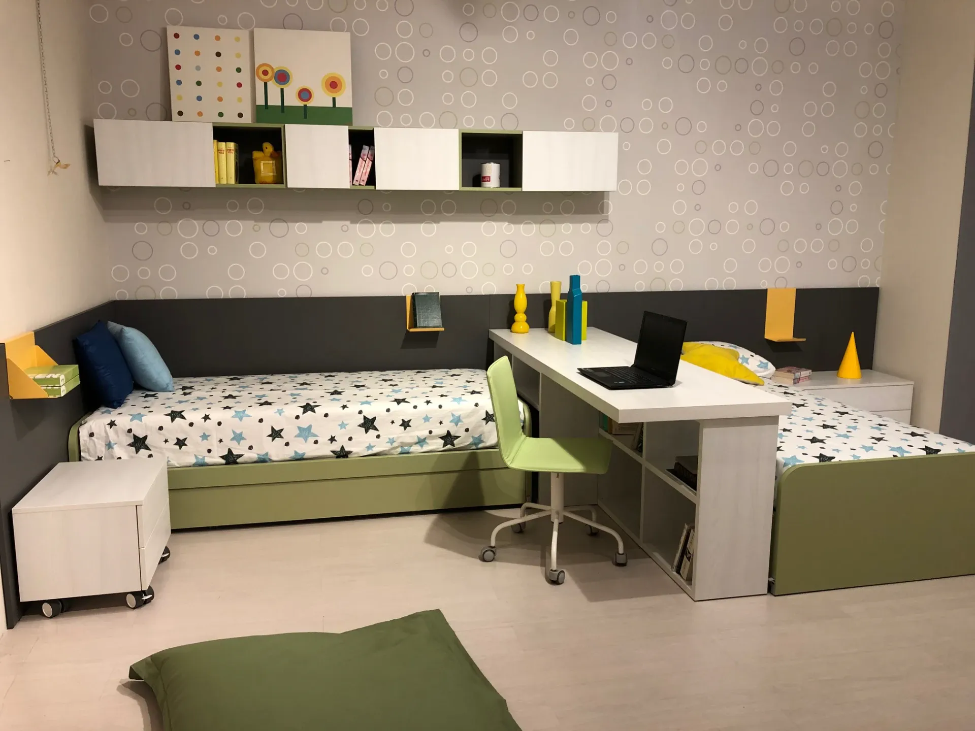 - Quando cerchi una cameretta, uno degli elementi essenziali da tenere in considerazione è il numero di bimbi che andrà ad accogliere: questa proposta prevede 3 letti.