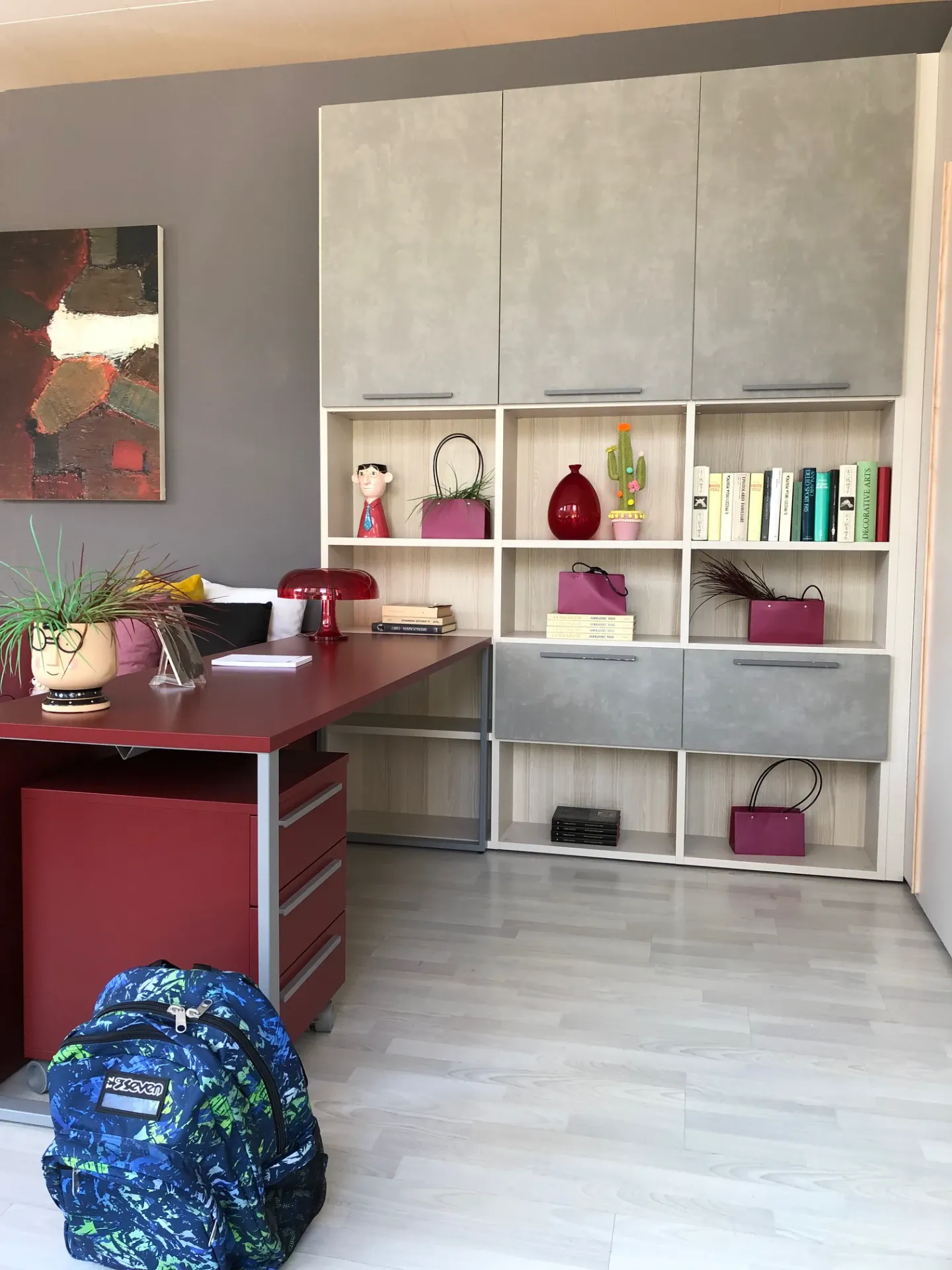 FINITURA: NOBILITATO FRASSINO NORMANDIE, TITANIO, TORTORA E LACCATO GRANATA