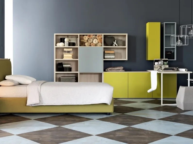 Cameretta per ragazzi Doimo Cityline,composta da: letto imbottito Madrid da una piazza e mezza cm 211 x 100 x 105 con testata e giroletto completamente sfoderabili,un comodino Golden da 90 cm con elemento Time cm 60, una scrittoio Zar cm 150 x 71 ,elementi over e club a comporre la libreria. I colori di questa composizione sono Ambra, Tirreno e laccato verde acido .La cameretta è studiata soprattutto per le esigenze di un teenager - adulto.Disponibilità di realizzare la cameretta su misura in diversi colori e dimensioni, la cameretta è interamente componibile con possibilità di cambiare la disposizione degli elementi.Potete inoltre comperare la vostra cameretta con materassi, guanciali, corredo tessile e tantissimi accessori. Rivenditori autorizzati Doimo Cityline Trasporto e montaggio da valutare con possibilità ritiro cliente