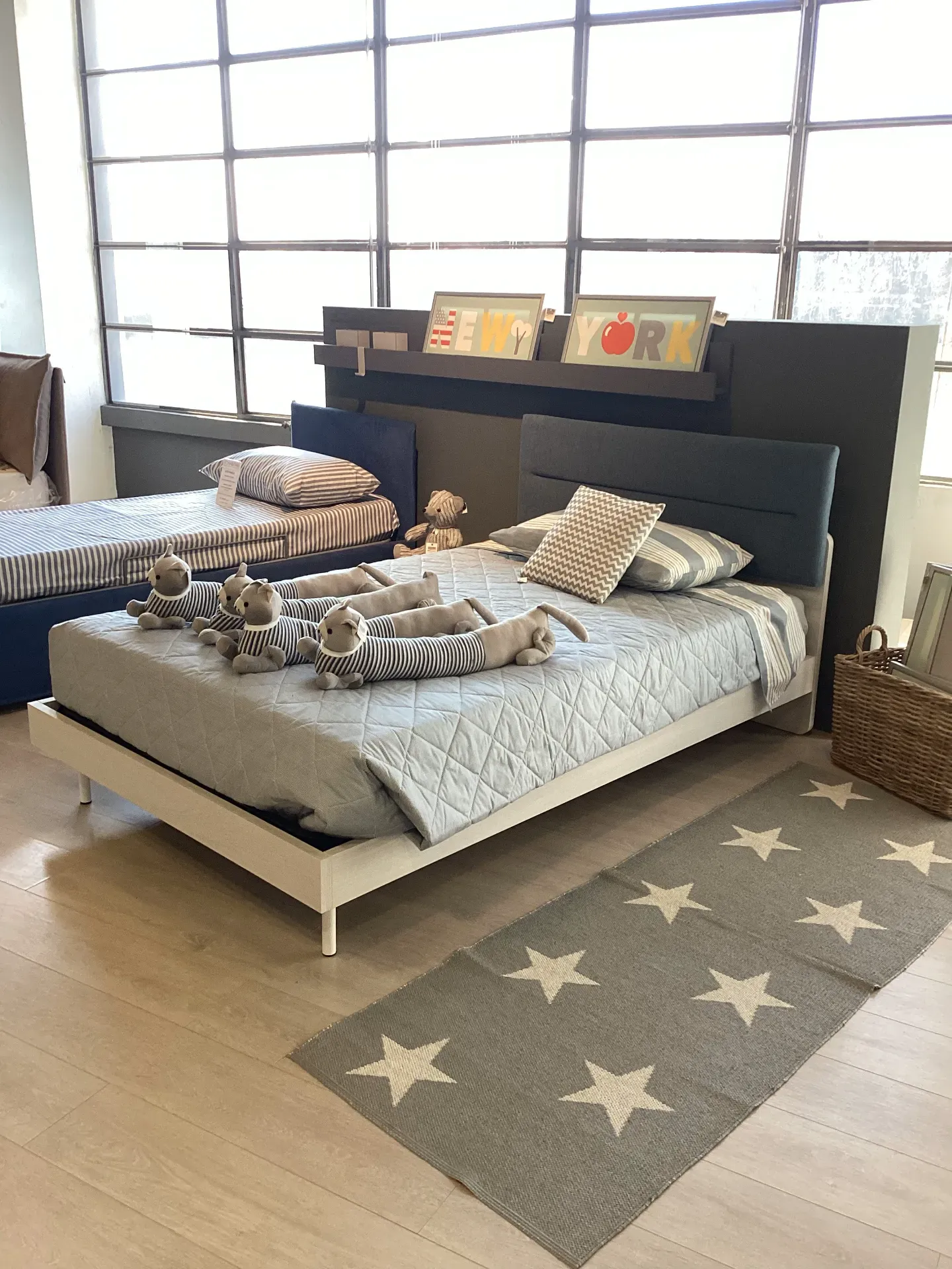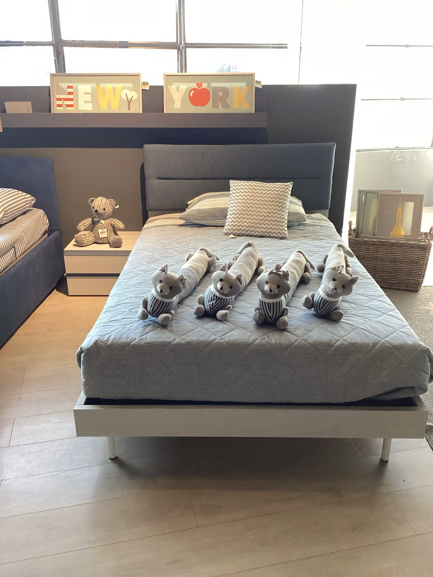 LETTO IN LAMINATO OLMO BIANCO TESTATA IMBOTTITA TESSUTO BLU INDACO