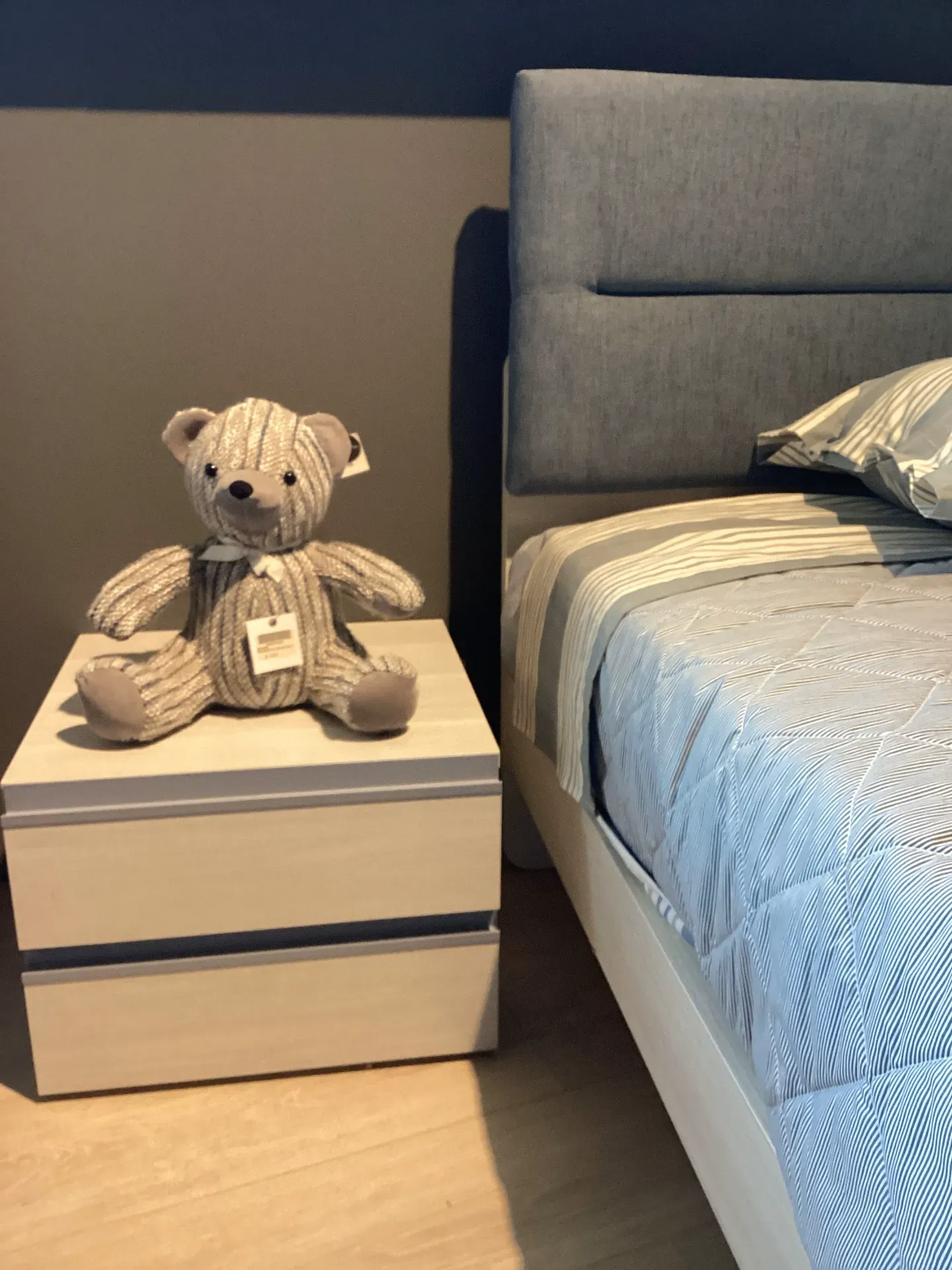 COMODINO A DUE CASSETTI IN LAMINATO OLMO BIANCO GOLE BLU AVIO