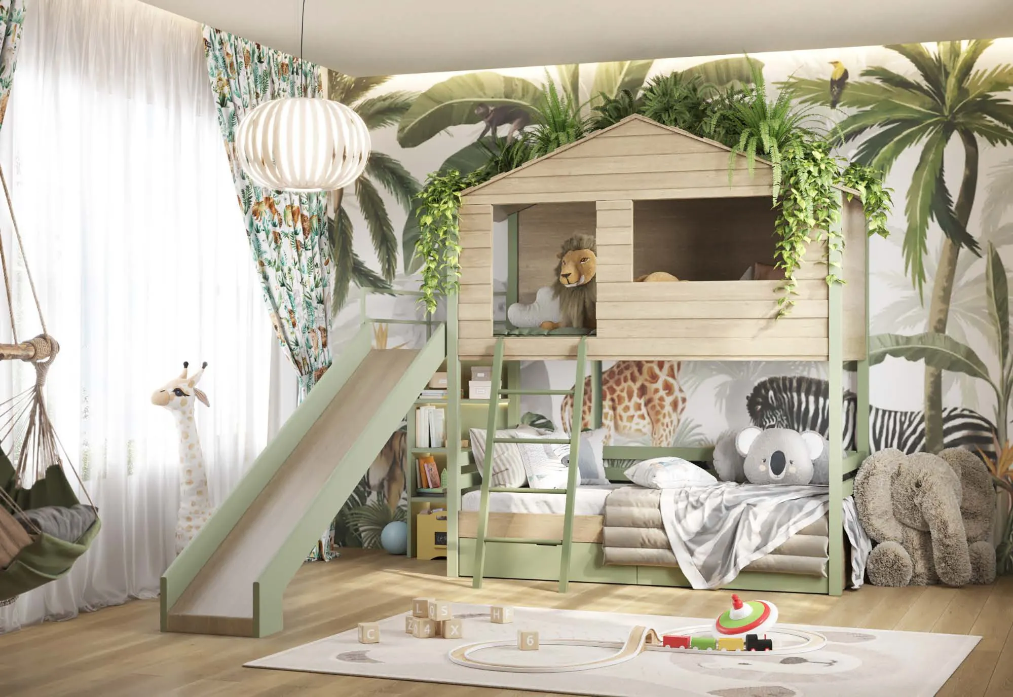 Per ricreare le atmosfere ideali per il regno dei giovani, scegli camerette dalle tonalità più intense e dalle linee sinuose, in modo che l'ambiente possa diffondere energia e serenità; il marchio ha optato per un materiale tanto pregiato quanto resistente per questa cameretta The explorer, ovvero il legno, tale da arricchire il valore estetico della stanza ultimandone anche le doti pratiche.