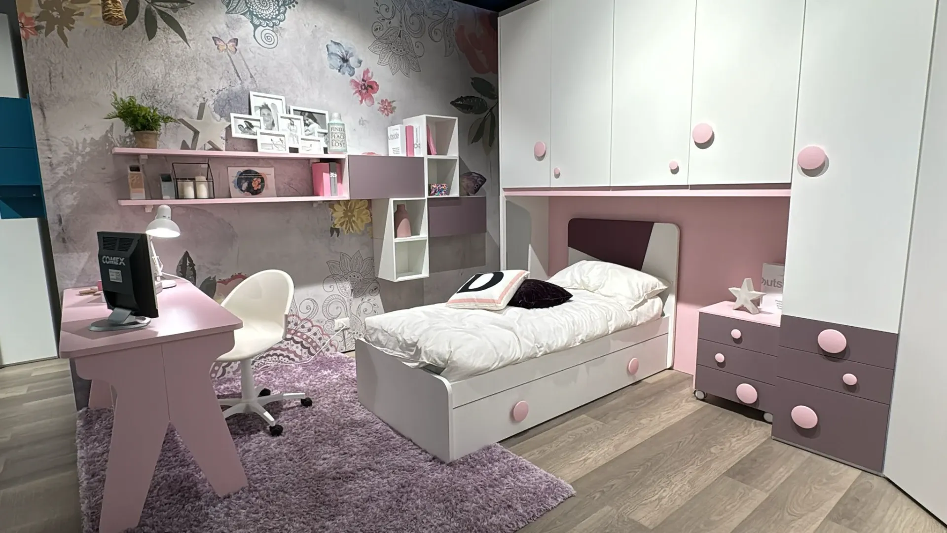 Realizzata nelle finitura bianco frassino, violetta e cipria.