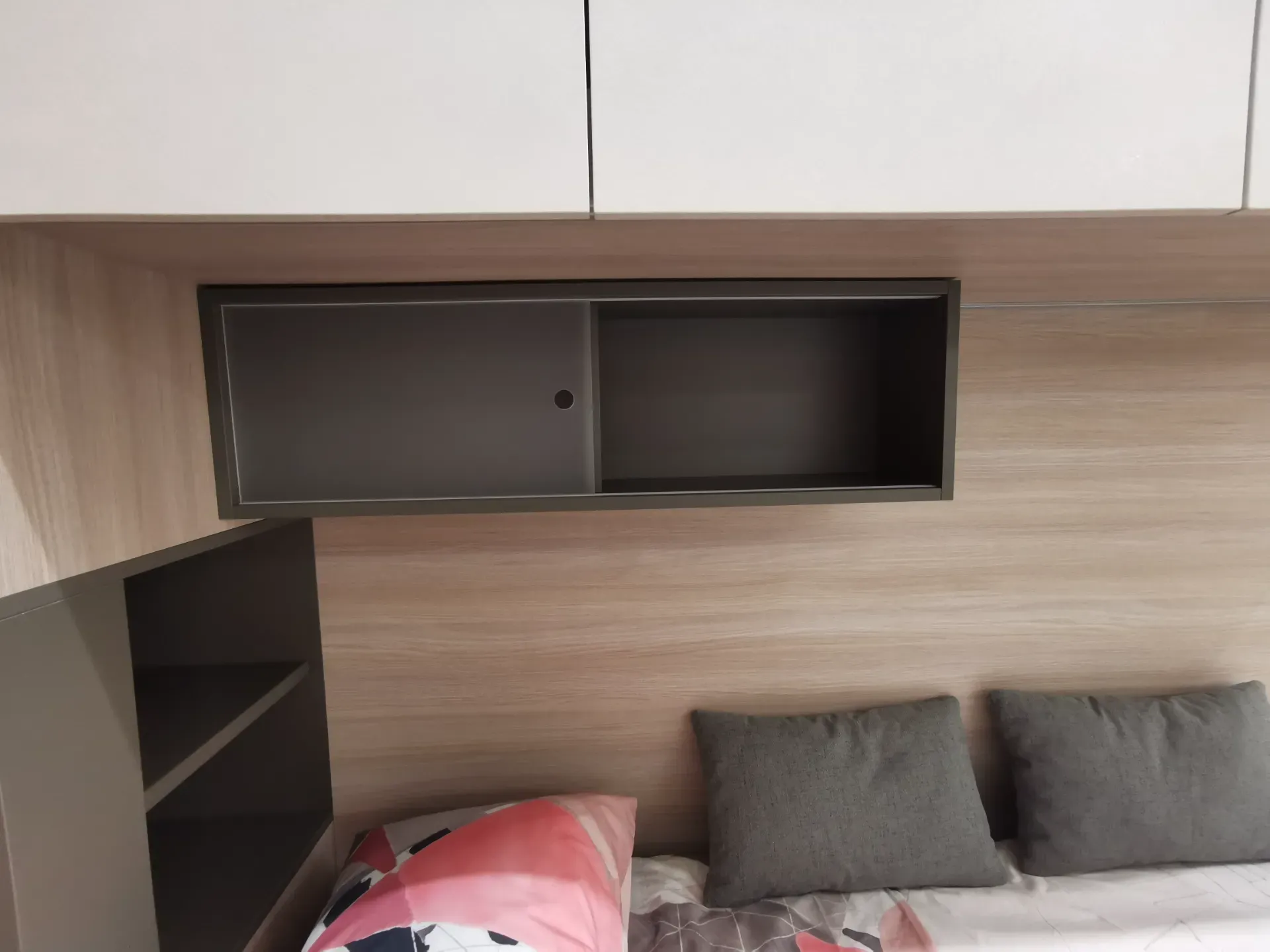 Realizzata completamente in nobilitato nelle finiture: OLMO GRIGIO - CEMENTO - GRAFITE