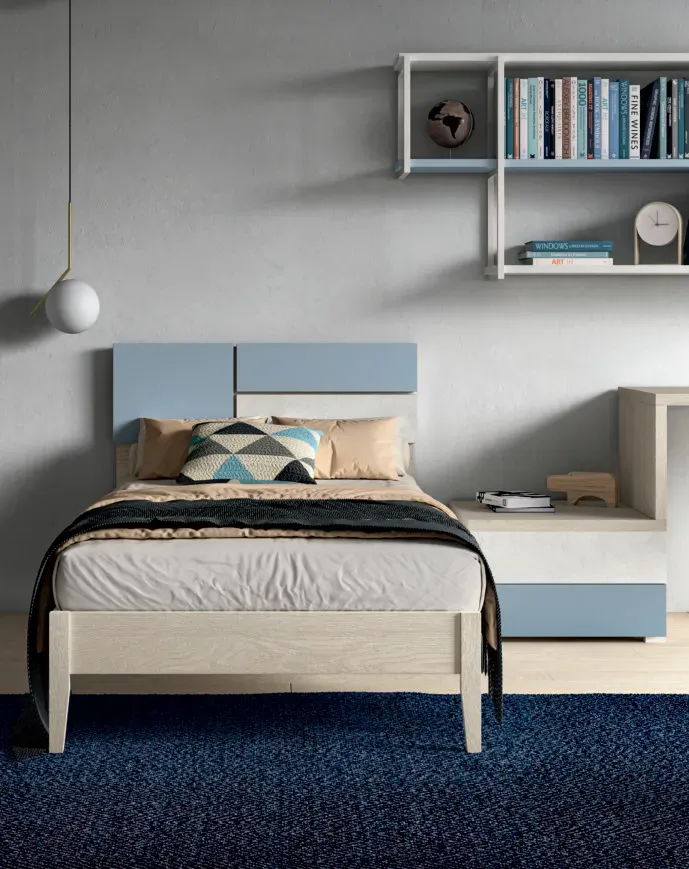 Le camerette per la Generazione Alpha, i bambini nati dopo il 2010, devono riflettere sia le esigenze pratiche che lo spirito innovativo e tecnologico di questa nuova generazione. Fantasy ha pensato per loro una gamma di colori brillanti e finiture alla moda che ispirino la fantasia e la creatività dei bambini, mobili dal design stimolante che incoraggiano l'indipendenza e l'autonomia. La camera dispone di letto modello Fusion con giroletto Sound, in finitura Rovere Chiaro, Kavir e Avio come in foto. Ha una lunghezza di 208cm, Altezza compresa la testiera di 90cm, profondità 101cm. Funzionalità e stile in ogni dettaglio. La libreria mensola Lab sospesa trasforma lo spazio in un ambiente vivace e stimolante per la creatività. I moduli hanno diverse configurazioni e i ripiani possono avere colori diversi. La struttura metallica è disponibile in bianco e titanio. Ha una larghezza di 180cm e altezza 72,5cm. A completare la stanza l'armadio Trix ad ante scorrevoli, con libreria a spalla integrata. L'armadio è disponibile in due varianti. Le ante lisce possono essere lisce o bicolor con decoro per un aspetto più creativo. Il guardaroba a vista alleggerisce l'estetica. L'armadio con la composizione come in foto, ha una larghezza di 271cm e altezza 258cm, libreria compresa. Rete inclusa. Escluso invece il materasso. Personalizzazione delle finiture senza variazione di prezzo. Consegna compresa nel prezzo, 30-40 giorni lavorativi. L'offerta per questa cameretta è di euro 3150,00. Per maggiori informazioni contattaci via mail o passa a trovarci nel nostro showroom.