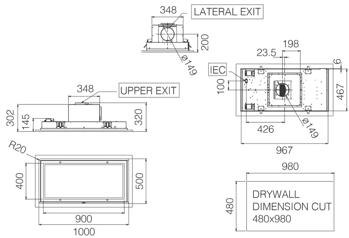 Cappa Skydome H.30 A/100 codice PRF0146232B