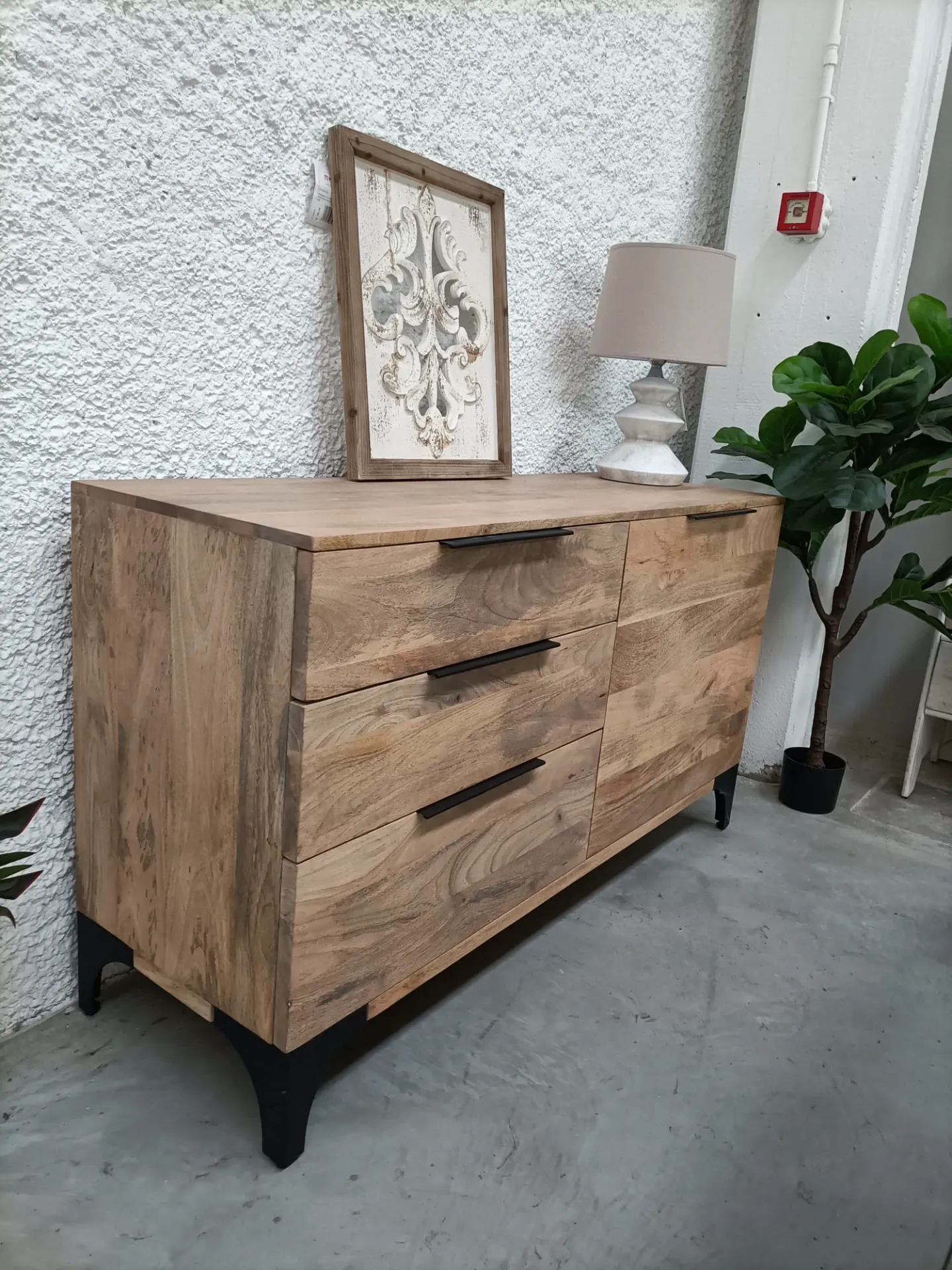 Che tu voglia ultimare una camera da letto in stile classico nonché di design minimale, le casettiere a marchio Nuovi mondi collection sapranno impreziosire i tuoi spazi ottimizzando ogni angolo. Il modello Cassettiera in i teak industrial nella fotografia potrà mettere in risalto le doti estetiche del locale pur restando essenziale dal punto di vista pratico.