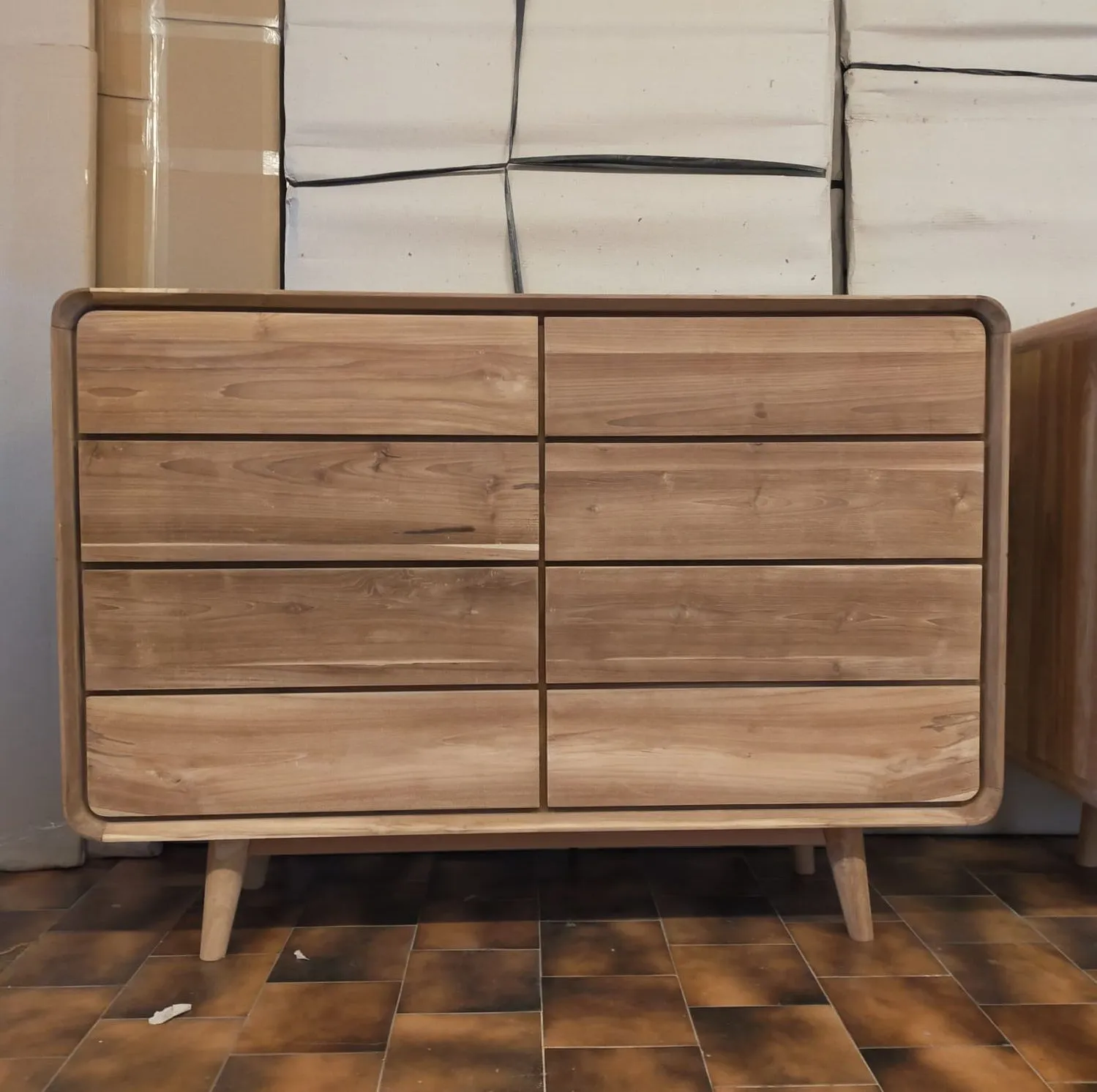 Cassettiera a 8 cassetti, dallo stile scandinavo contemporaneo. Prodotto di alta qualità realizzato artigianalmente in Teak massello con finitura naturale. La cassettiera è perfetta sia nella zona notte o come mobile contenitivo nella zona giorno o in bagno, in ogni stanza vi darà un tocco di stile e personalità che non passerà inosservata.